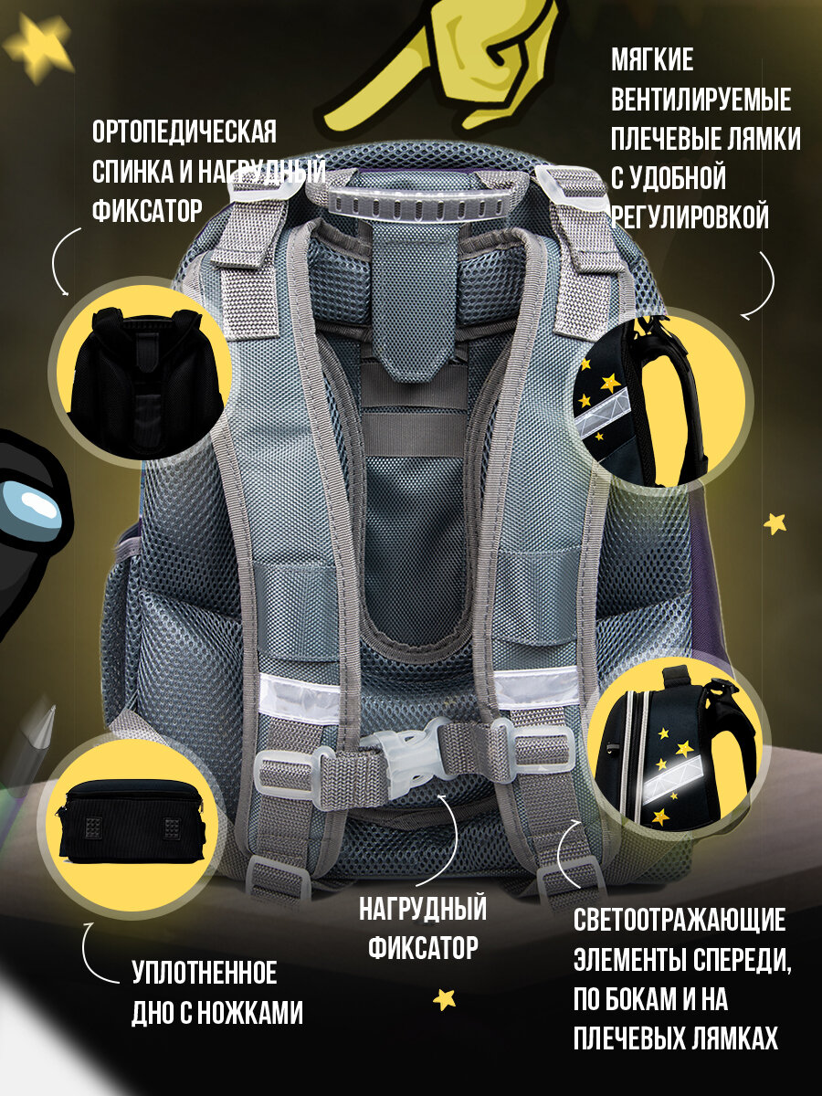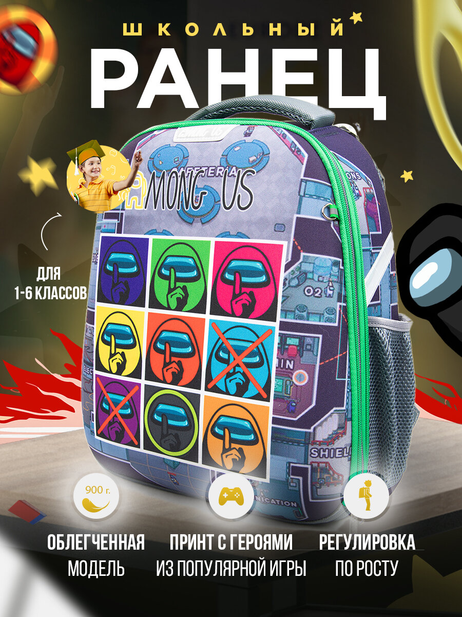 Купить Рюкзак школьный детский Among Us, ранец с ортопедической спинкой девочке, мальчику, первокласснику, подростку 4015DU