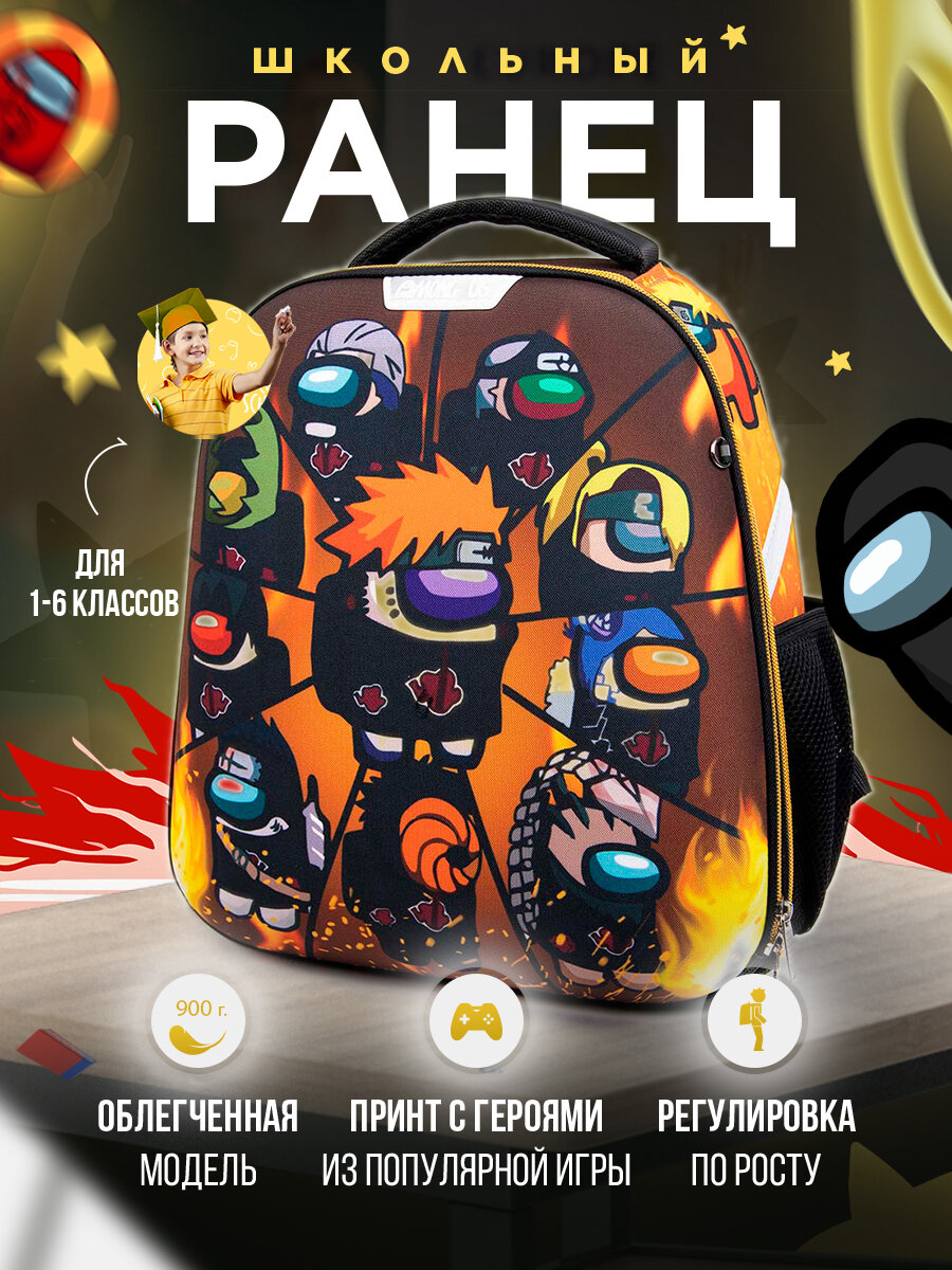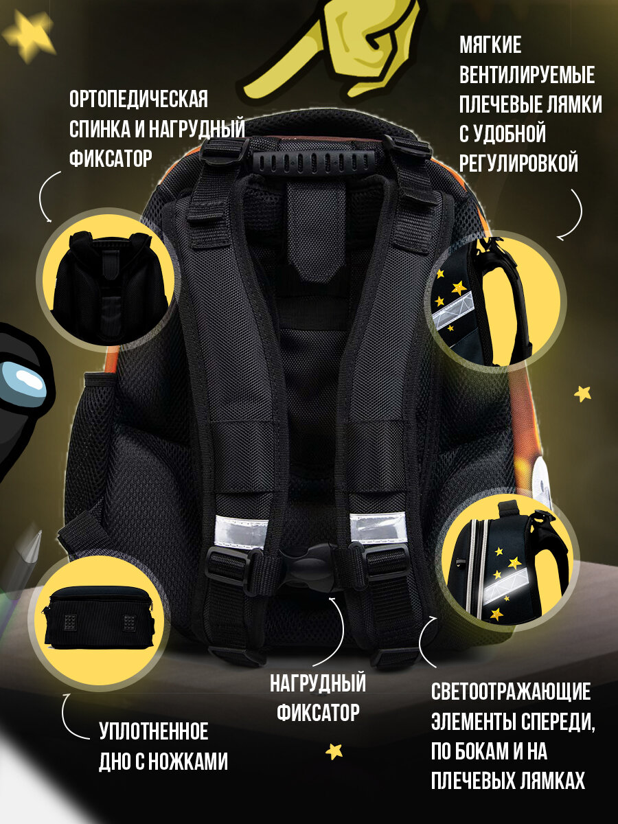 Купить Рюкзак школьный детский Among Us, ранец с ортопедической спинкой девочке, мальчику, первокласснику, подростку 4039DU