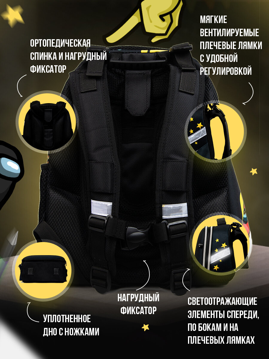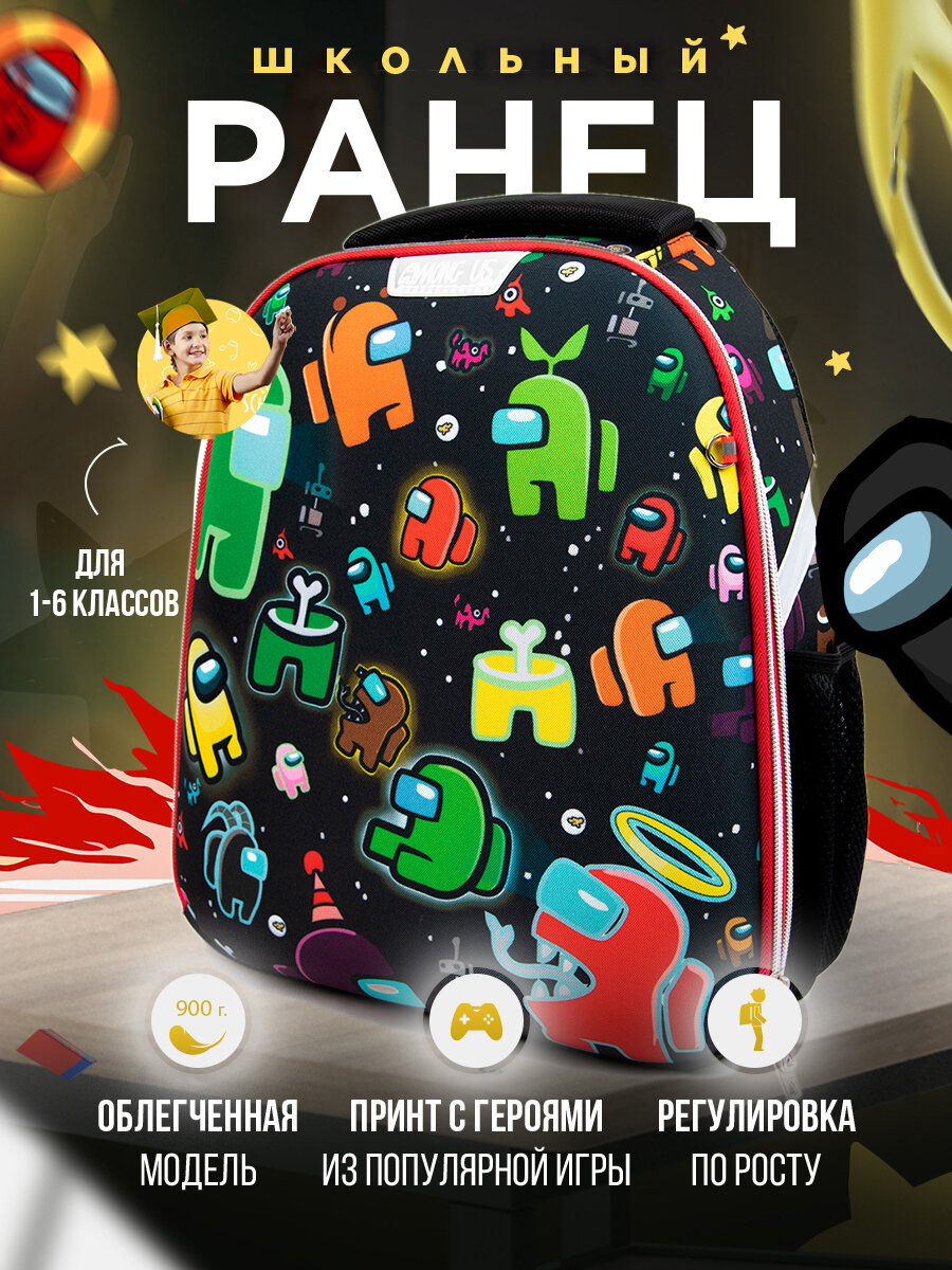 Купить Рюкзак школьный детский Among Us, ранец с ортопедической спинкой девочке, мальчику, первокласснику, подростку 4017DU
