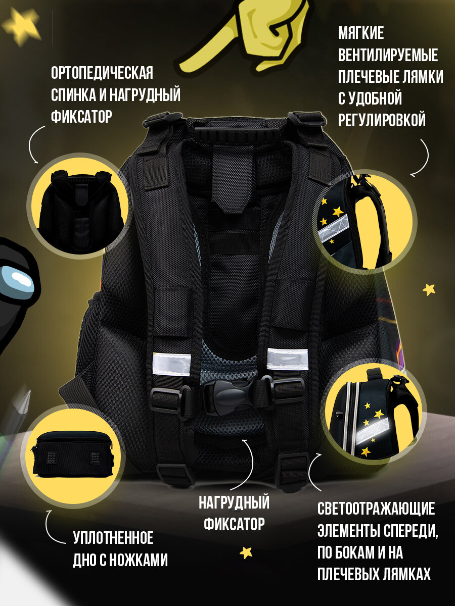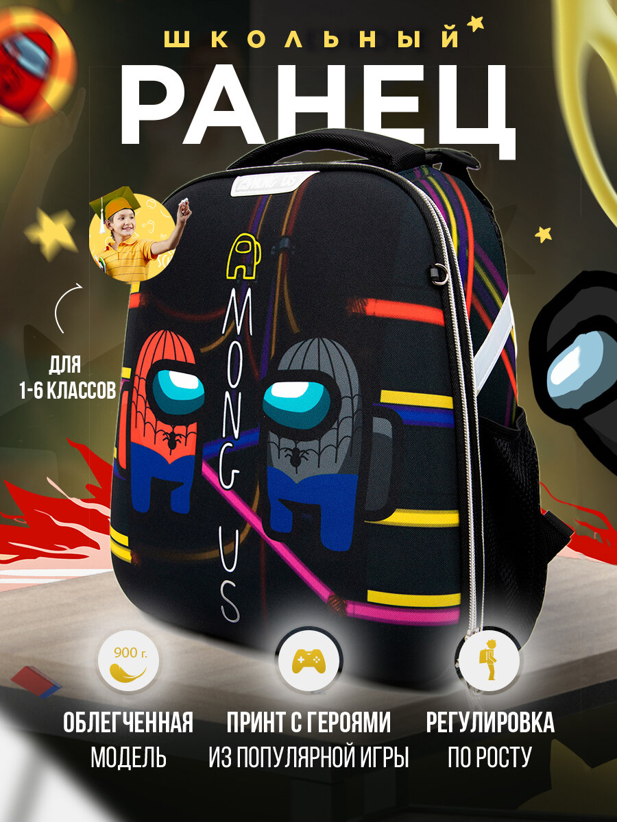 Купить Рюкзак школьный детский Among Us, ранец с ортопедической спинкой девочке, мальчику, первокласснику, подростку 4014DU