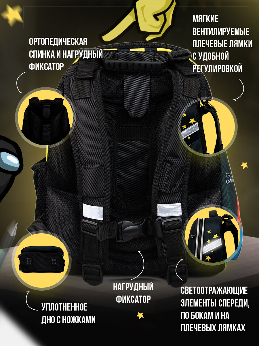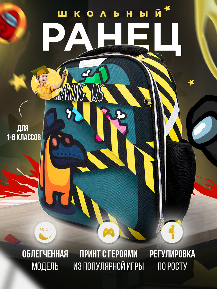 Купить Рюкзак школьный детский Among Us, ранец с ортопедической спинкой девочке, мальчику, первокласснику, подростку 4018DU
