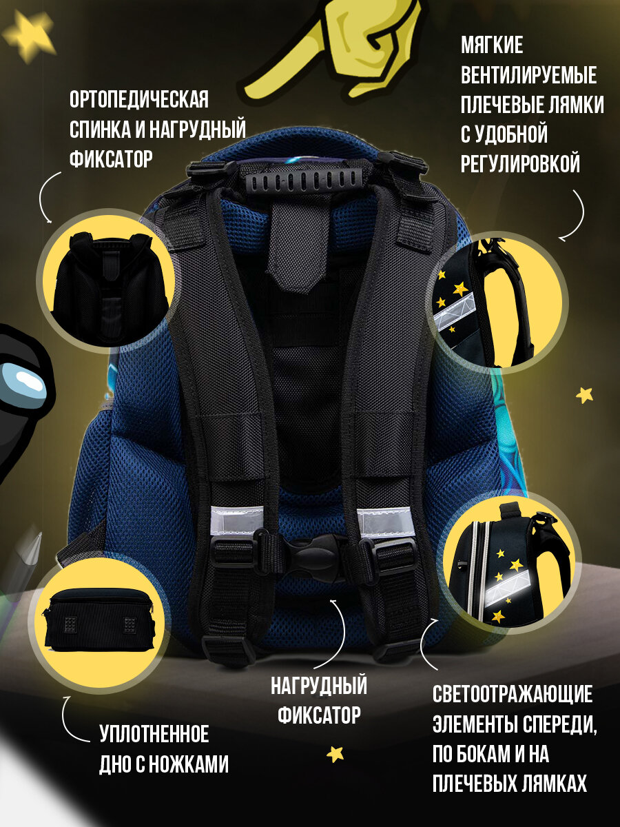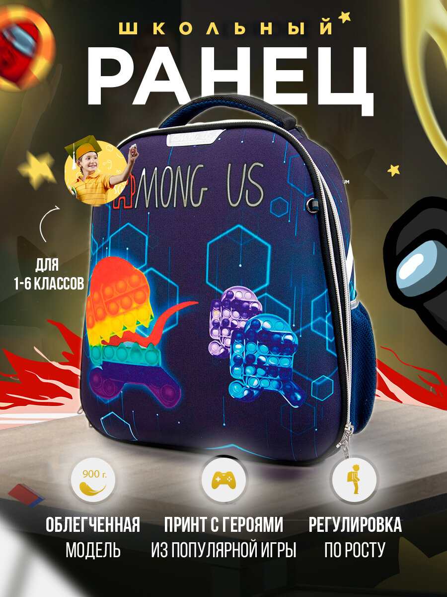 Купить Рюкзак школьный детский Among Us, ранец с ортопедической спинкой девочке, мальчику, первокласснику, подростку 4033DU