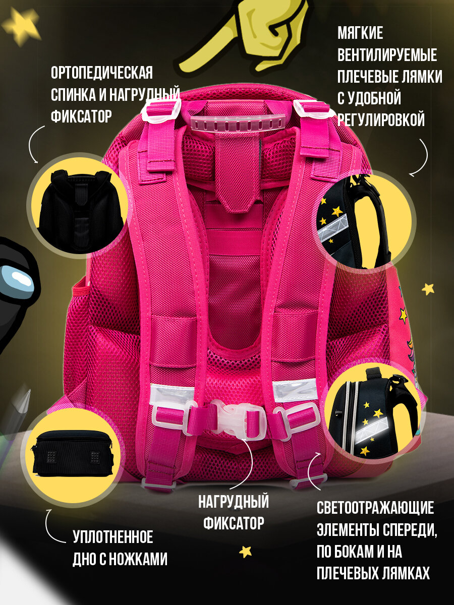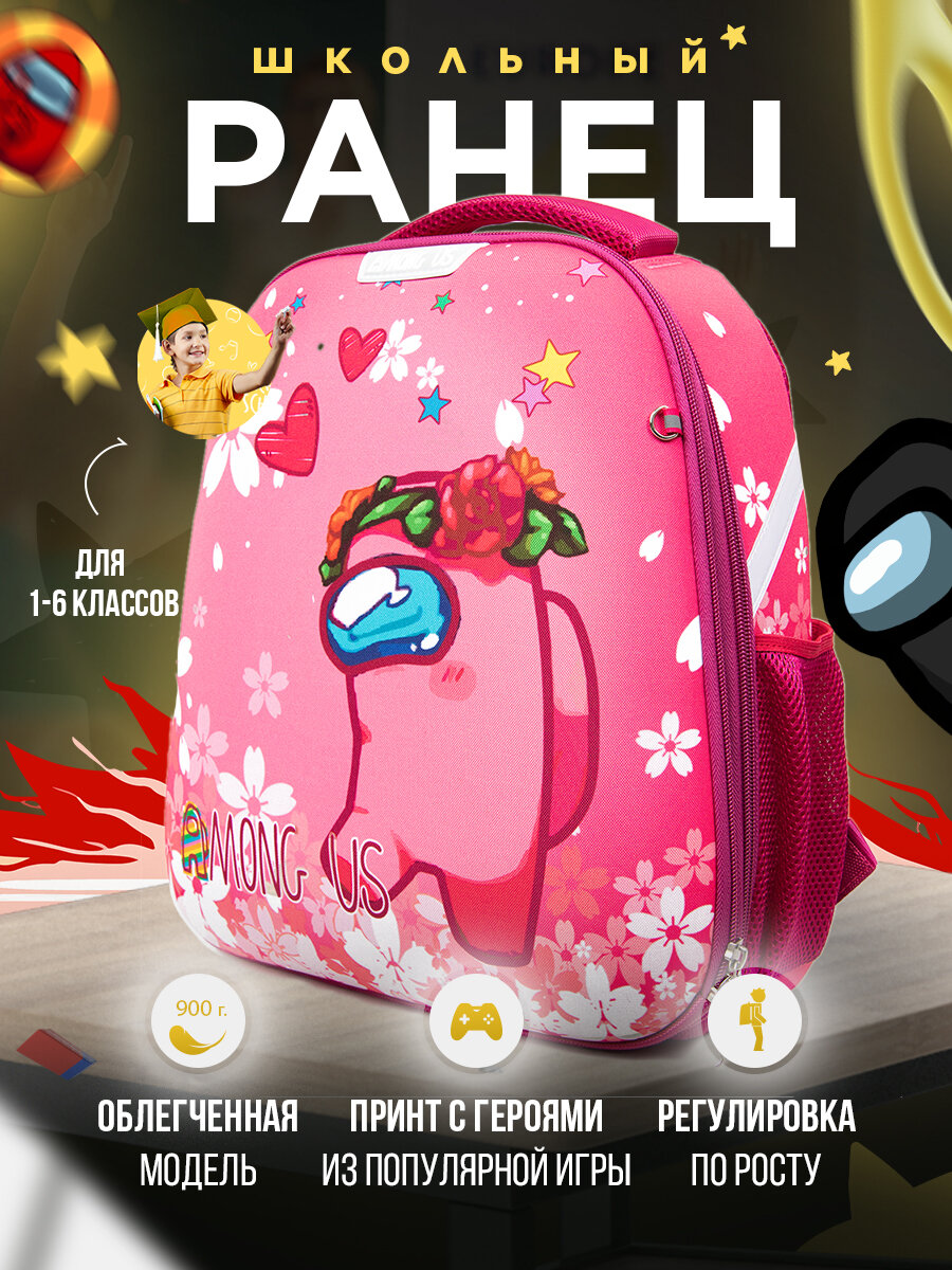 Купить Рюкзак школьный детский Among Us, ранец с ортопедической спинкой девочке, мальчику, первокласснику, подростку 4020DU