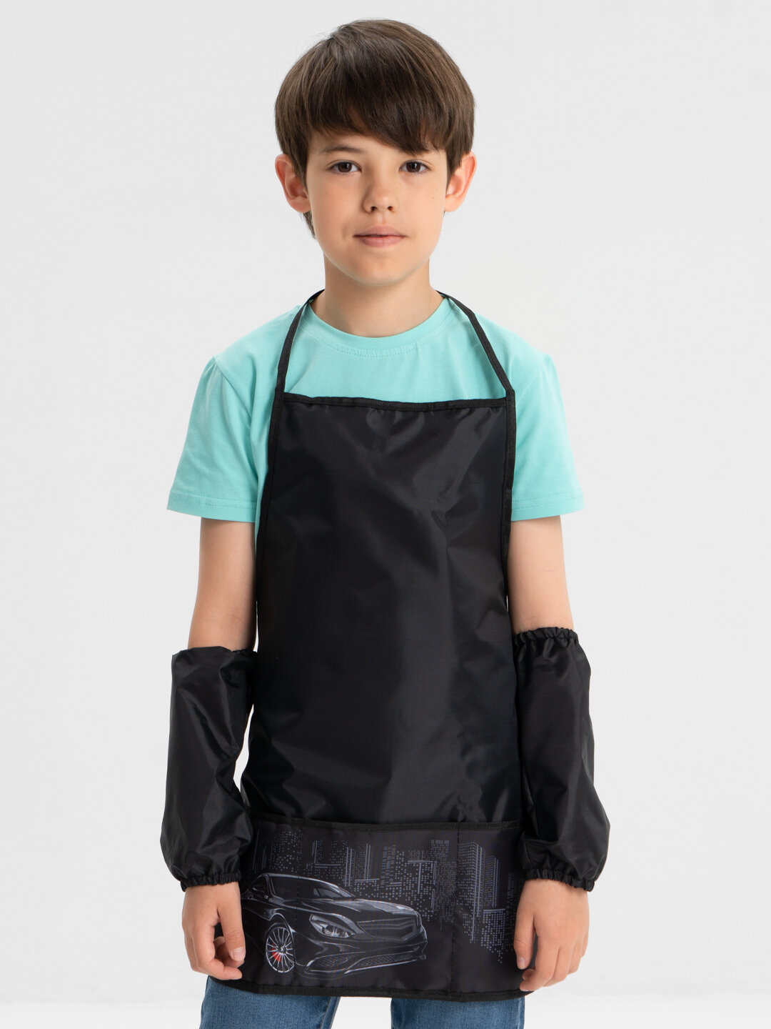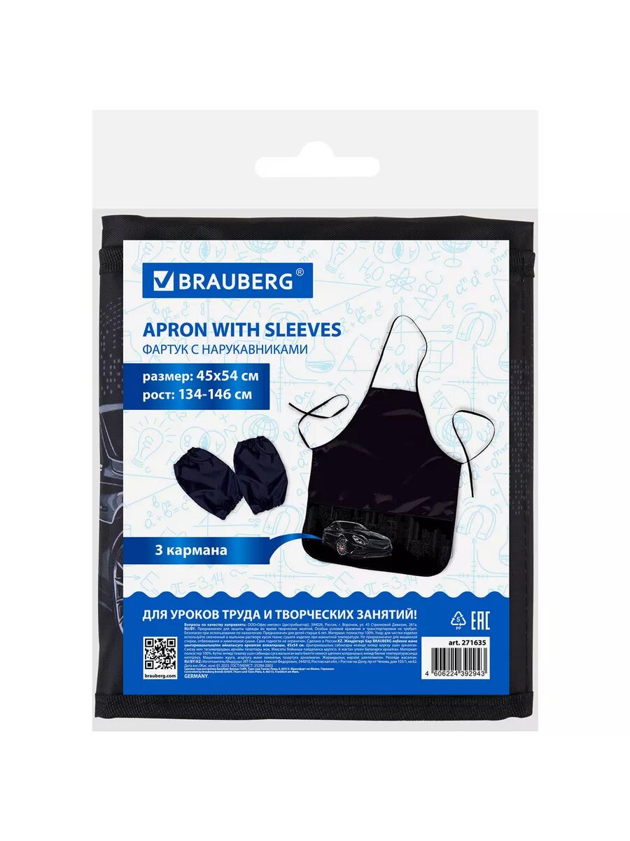 Накидка фартук с нарукавниками для труда BRAUBERG, 3 кармана, 46x54 см, "Night Racer", 271635 интересное: