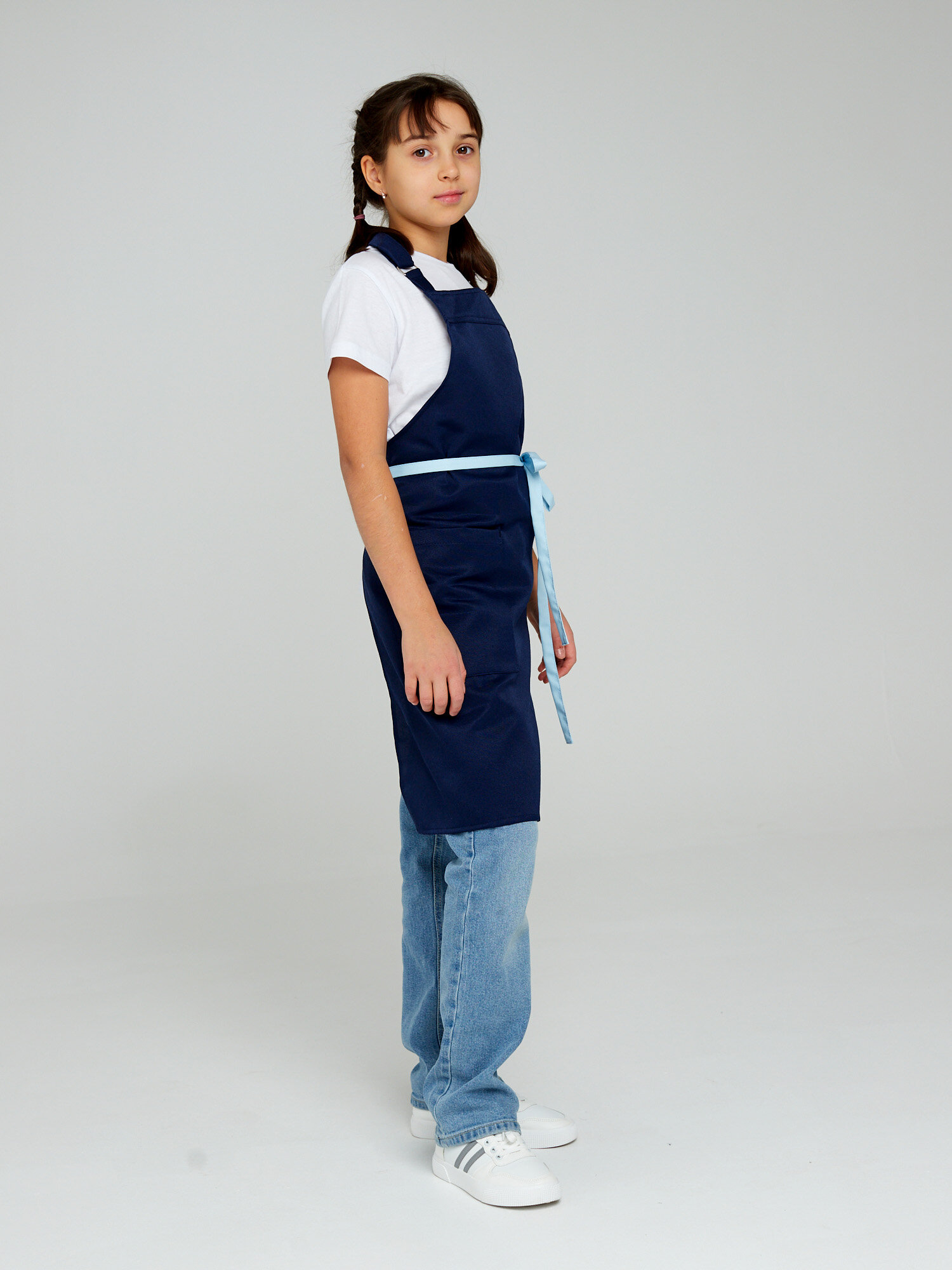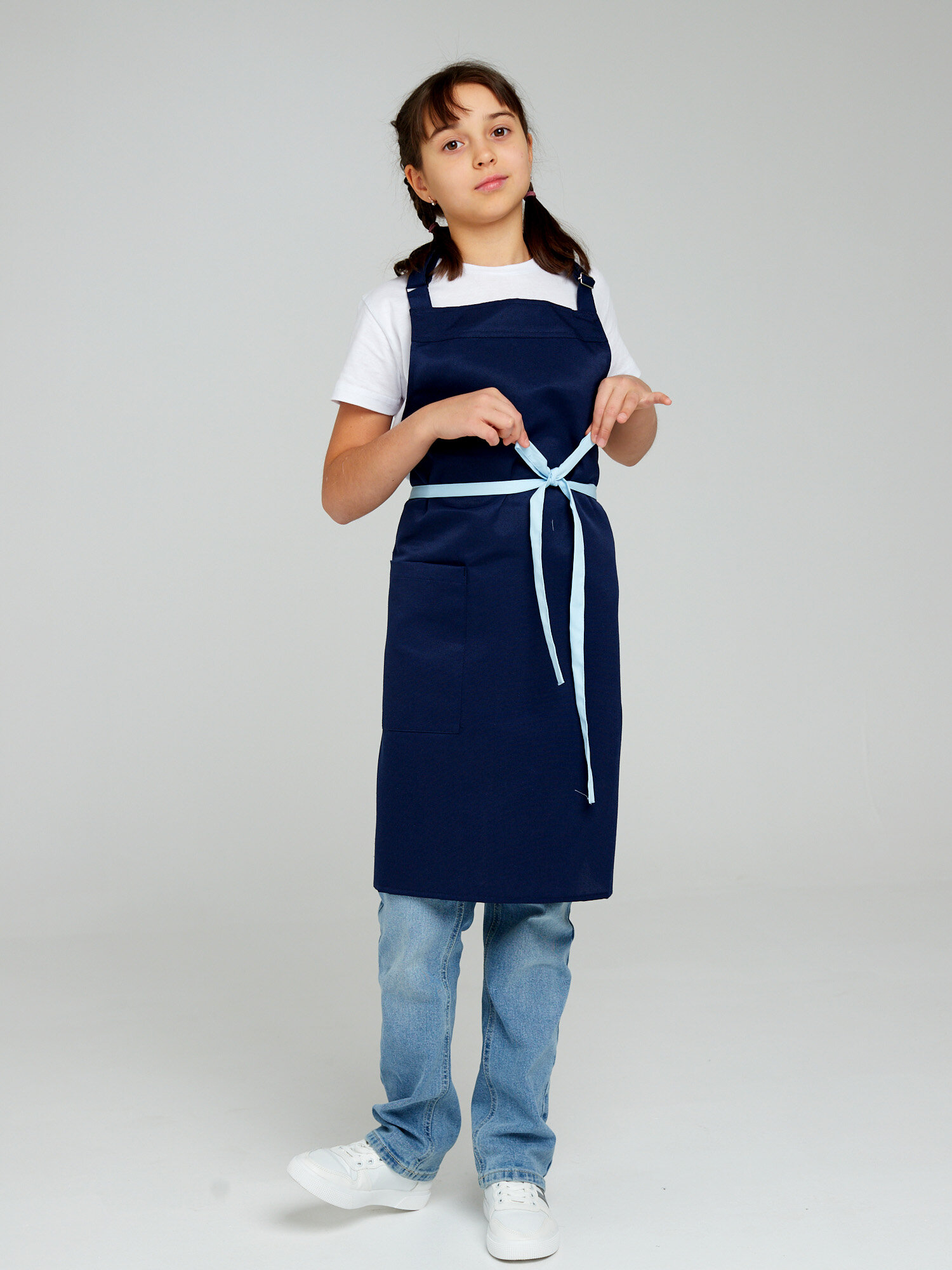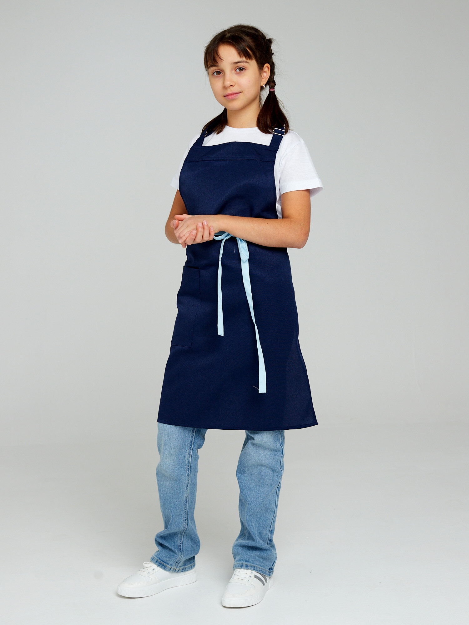 Фартук подростковый тёмно-синий с голубыми завязками/завязки на талии/для уроков труда/кулинарии/творчества интересное: