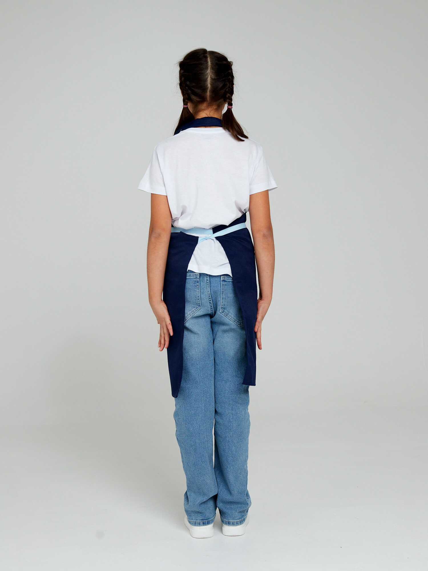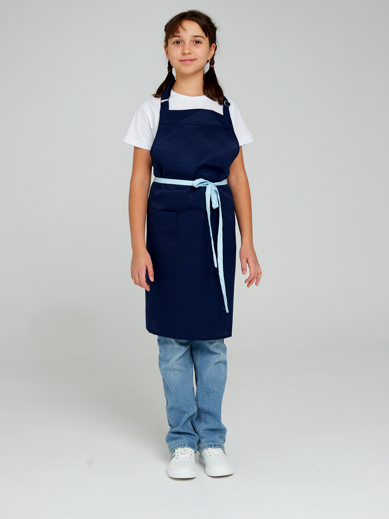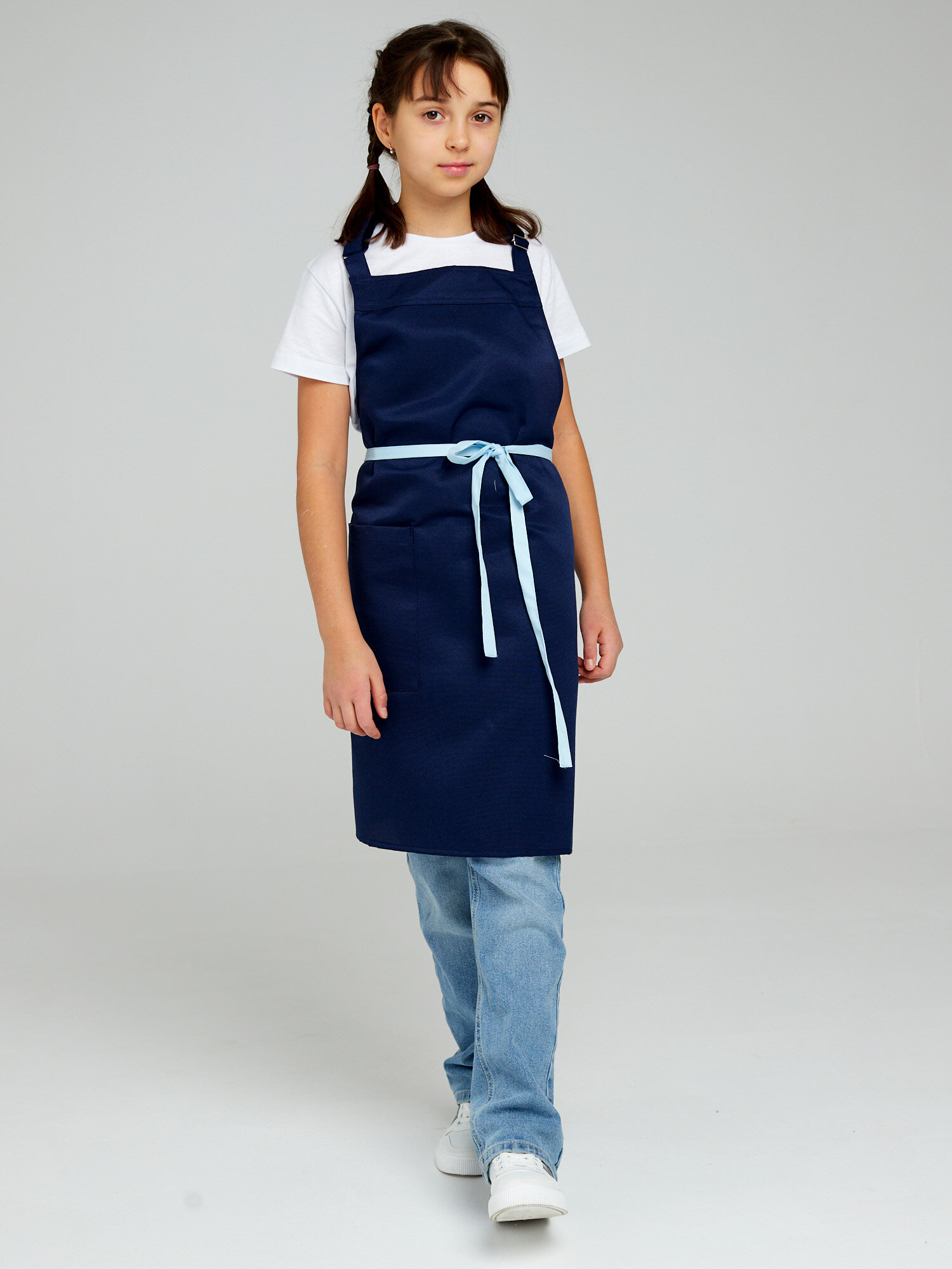 Фартук подростковый тёмно-синий с голубыми завязками/завязки на талии/для уроков труда/кулинарии/творчества интересное: