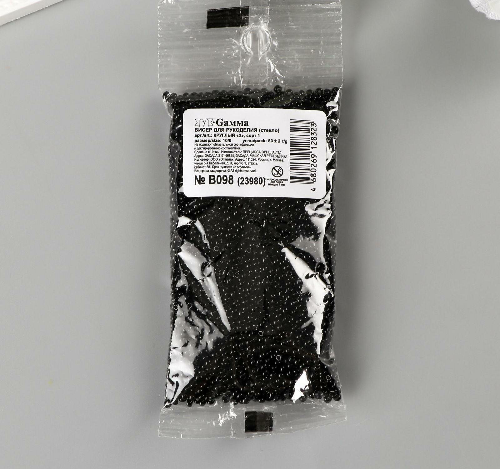 Купить Бисероплетение Чехия Gamma круглый 2 10/0 2.3 мм 50 г 1-й сорт B098 черный ( 23980 )