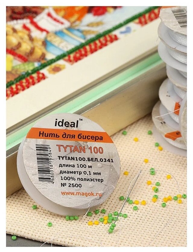 Нить для бисера Титан 100 диаметр 0,1мм, длина 100м, цвет белый, полиэстер, 1030-104, 1шт интересное: