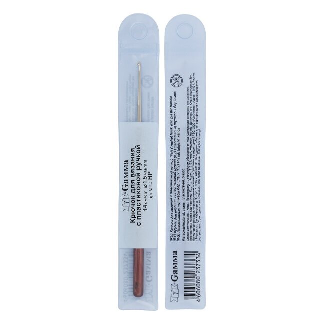 Купить Крючок Gamma для вязания HP с пласт. ручкой металл d 1.5 мм 14 см в чехле.