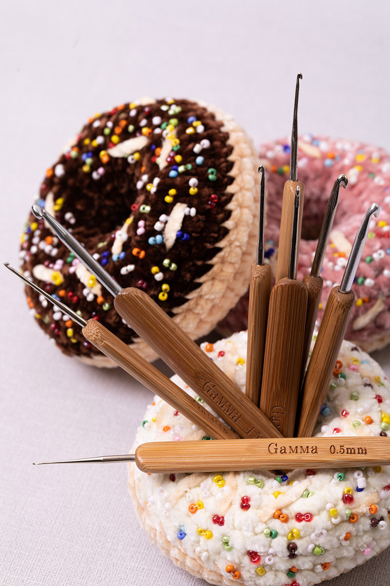 Крючки для вязания "Gamma" RHB крючок с бамбуковой ручкой сталь бамбук d 0.5 мм 13.5 см в блистере .