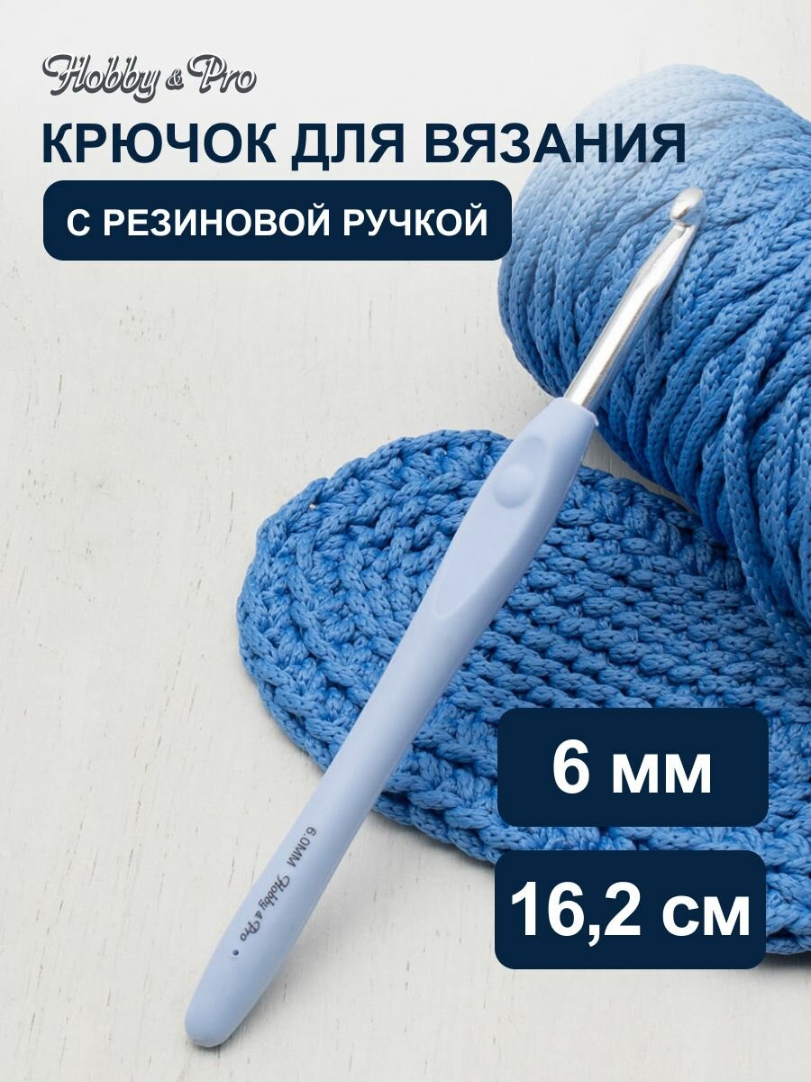 Купить Крючок для вязания с резиновой ручкой и выемкой для пальца, диаметр 6 мм, длина 16,2 см, Hobby&Pro