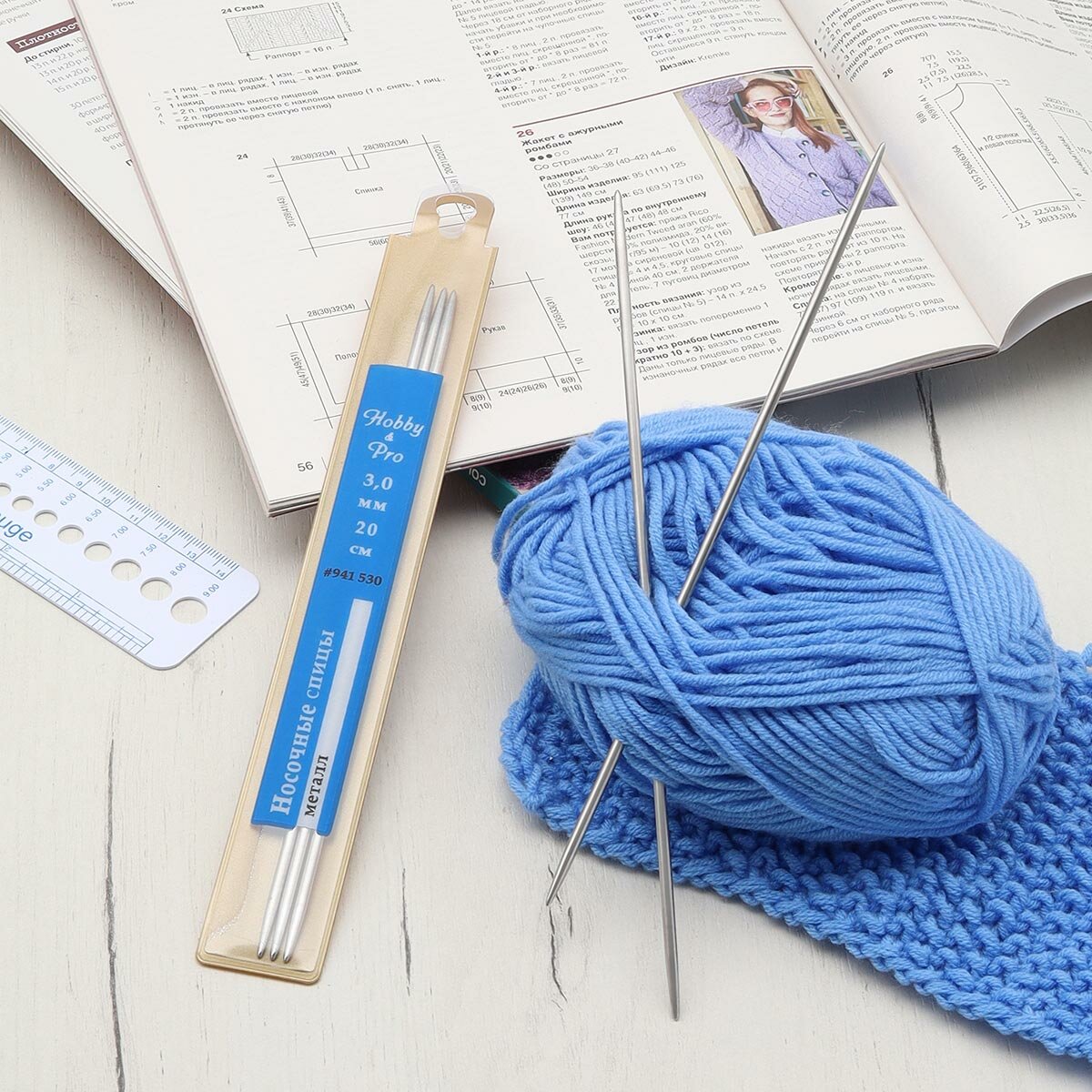 | Комплектация | Спицы носочные металл 20 см*3,5 мм, Hobby&Pro |