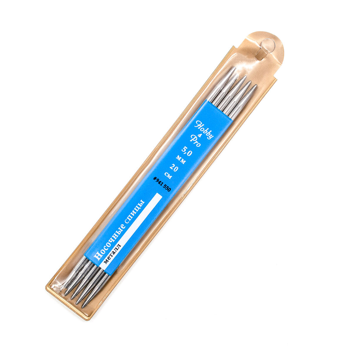 Спицы для вязания носочные Hobby&Pro, 20см*5мм, металлические, 5 шт