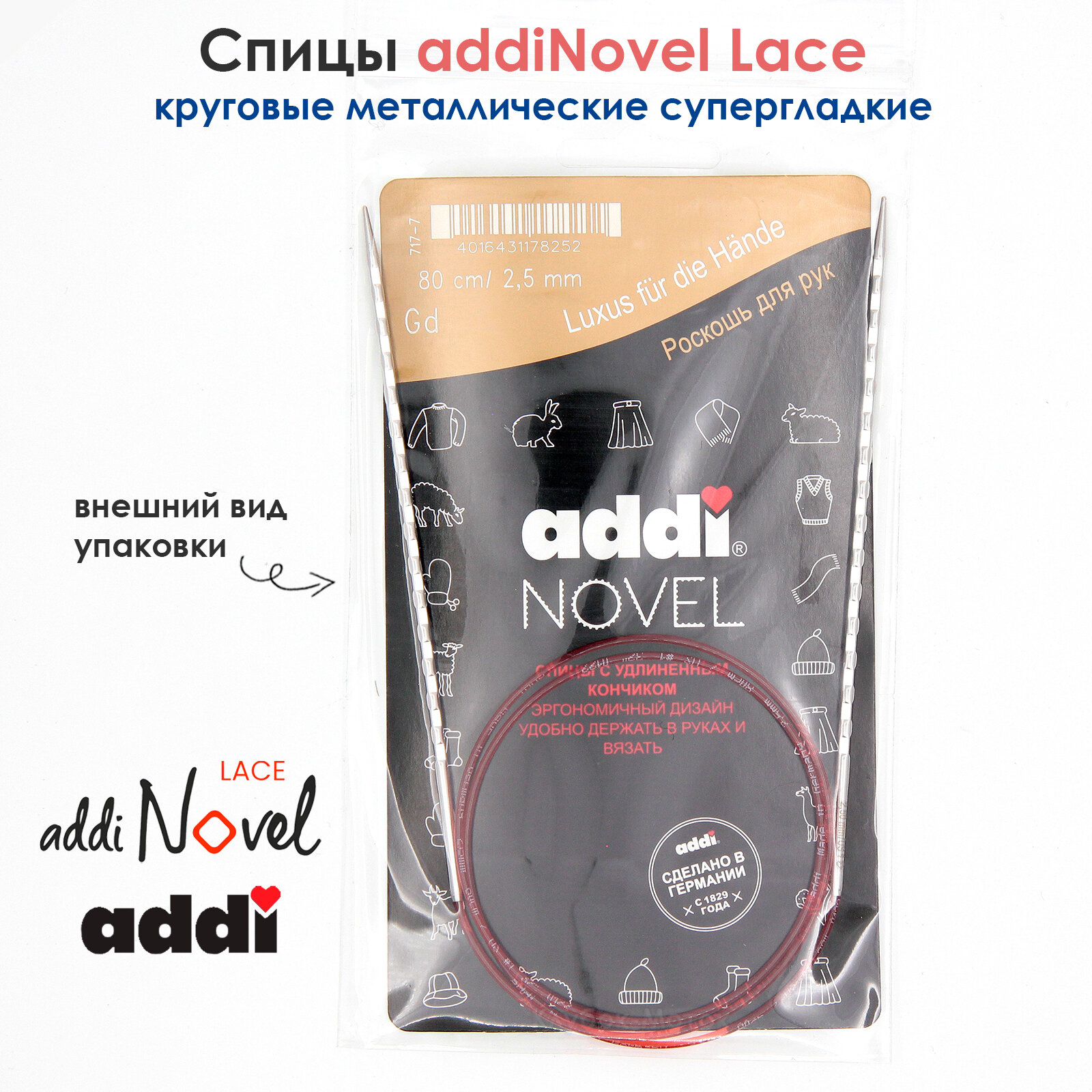 Addi 717-7 Спицы металлические круговые супергладкие c квадратным кончиком addiNovel 80см #717-7/2.5-80 Addi 2.5 интересное: