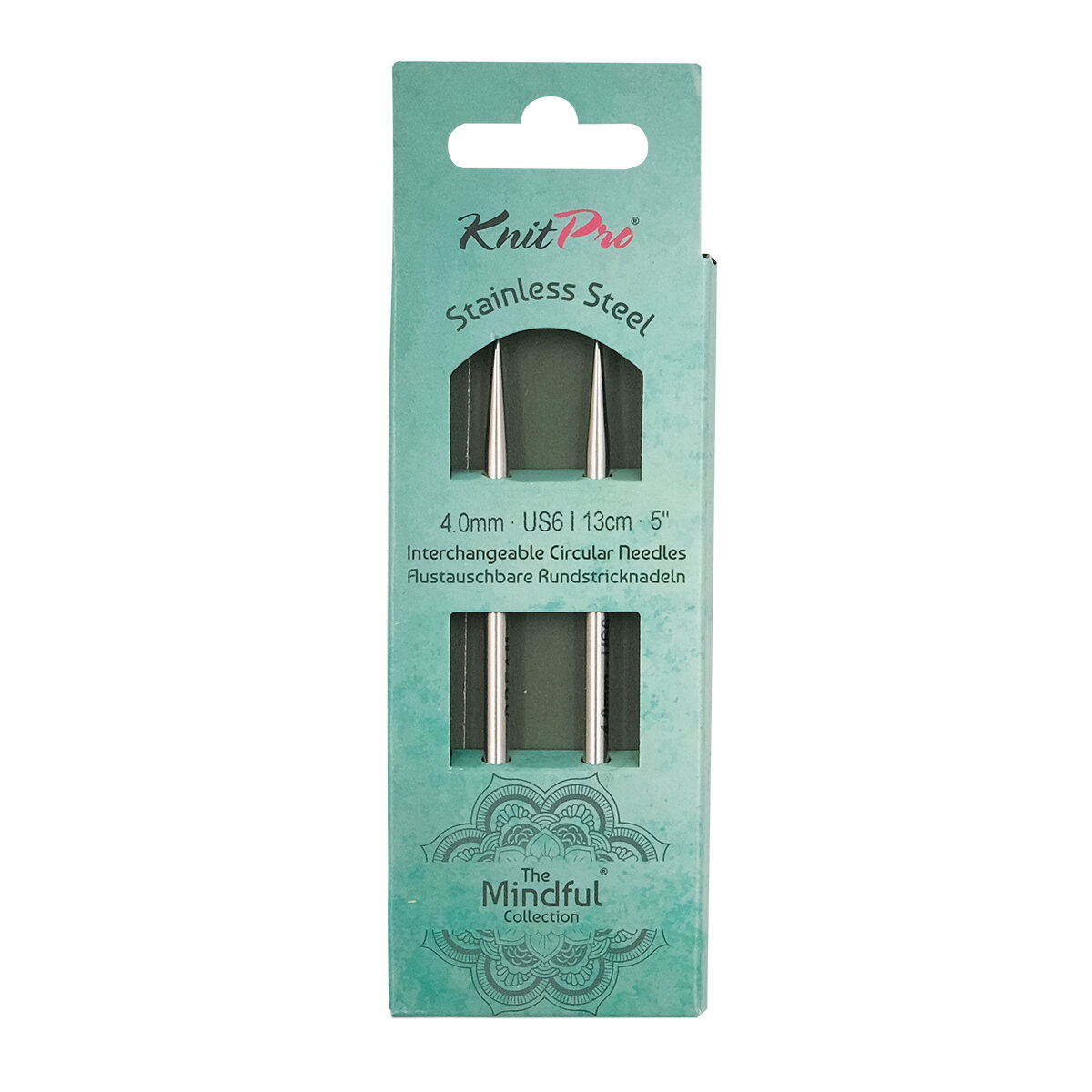 Спицы съемные Mindful 4 мм*13 см, нержавеющая сталь, серебристые, 2 шт, KnitPro