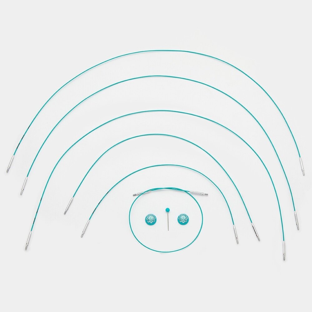 Купить 36607 Knit Pro Тросик поворотный Mindful (заглушки 2шт, кабельный ключик), длина 126см, нержавеющая сталь с нейлоновым покрытием, бирюзовый
