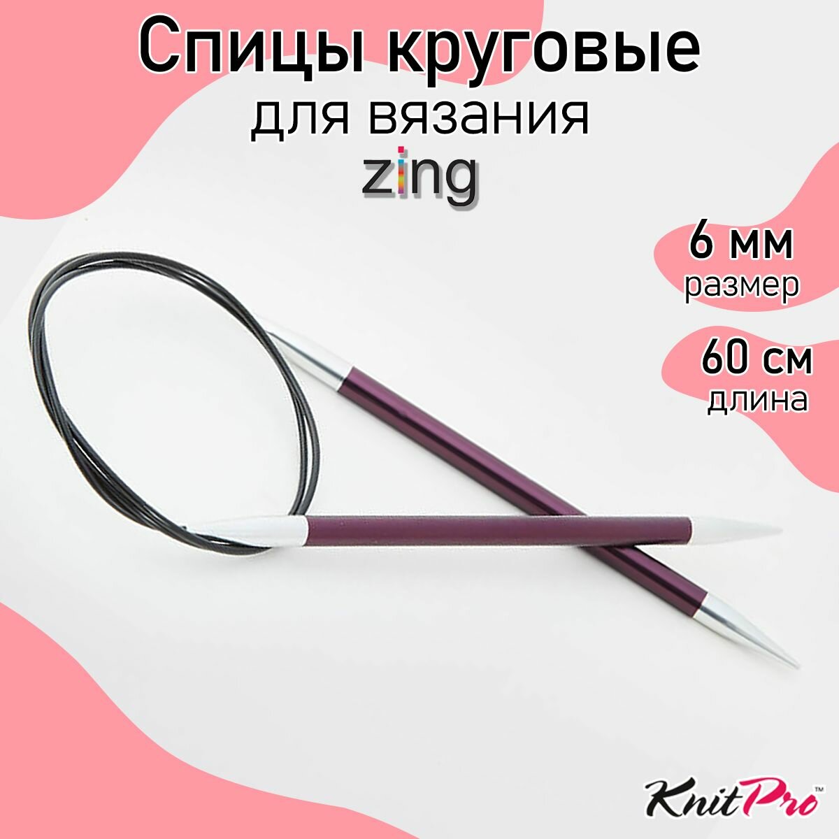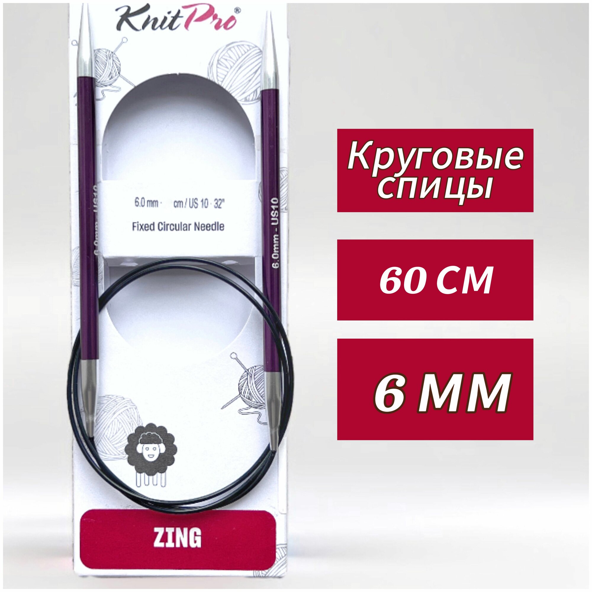 Купить 47103 Knit Pro Спицы круговые для вязания Zing 6мм/60см, алюминий
