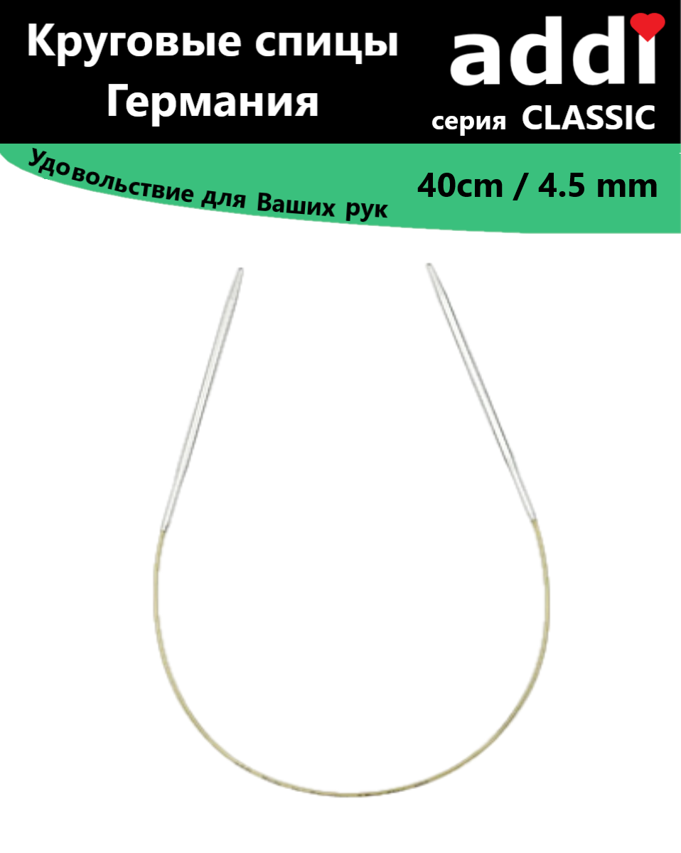 Купить Addi 105-7 Спицы круговые супергладкие из никелированной латуни 40см #105-7/4.5-40 Addi 4.5