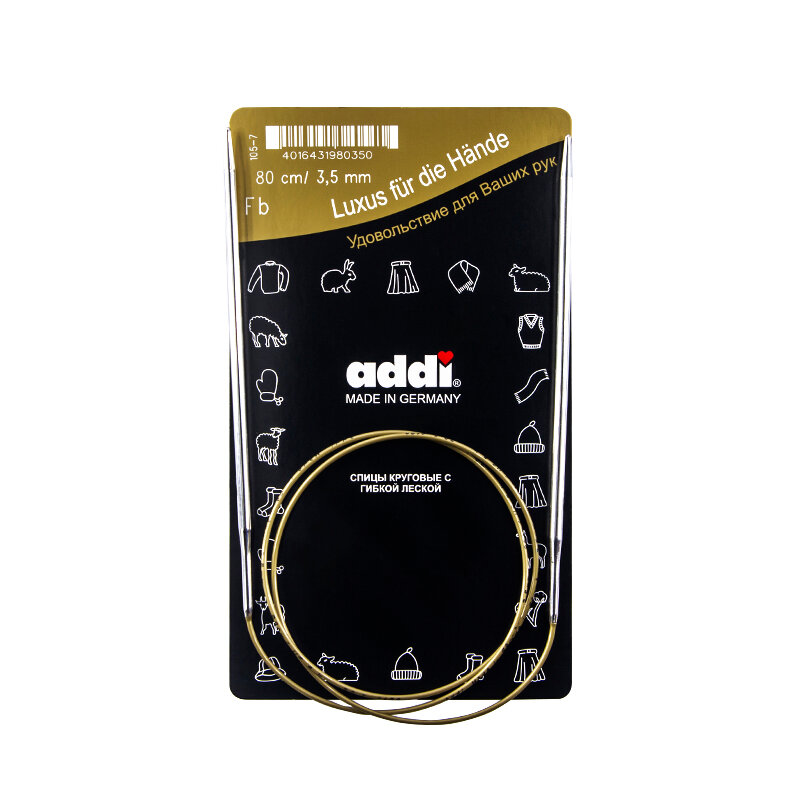 Купить Addi 105-7 Спицы круговые супергладкие из никелированной латуни 80см #105-7/3.5-80 Addi 3.5