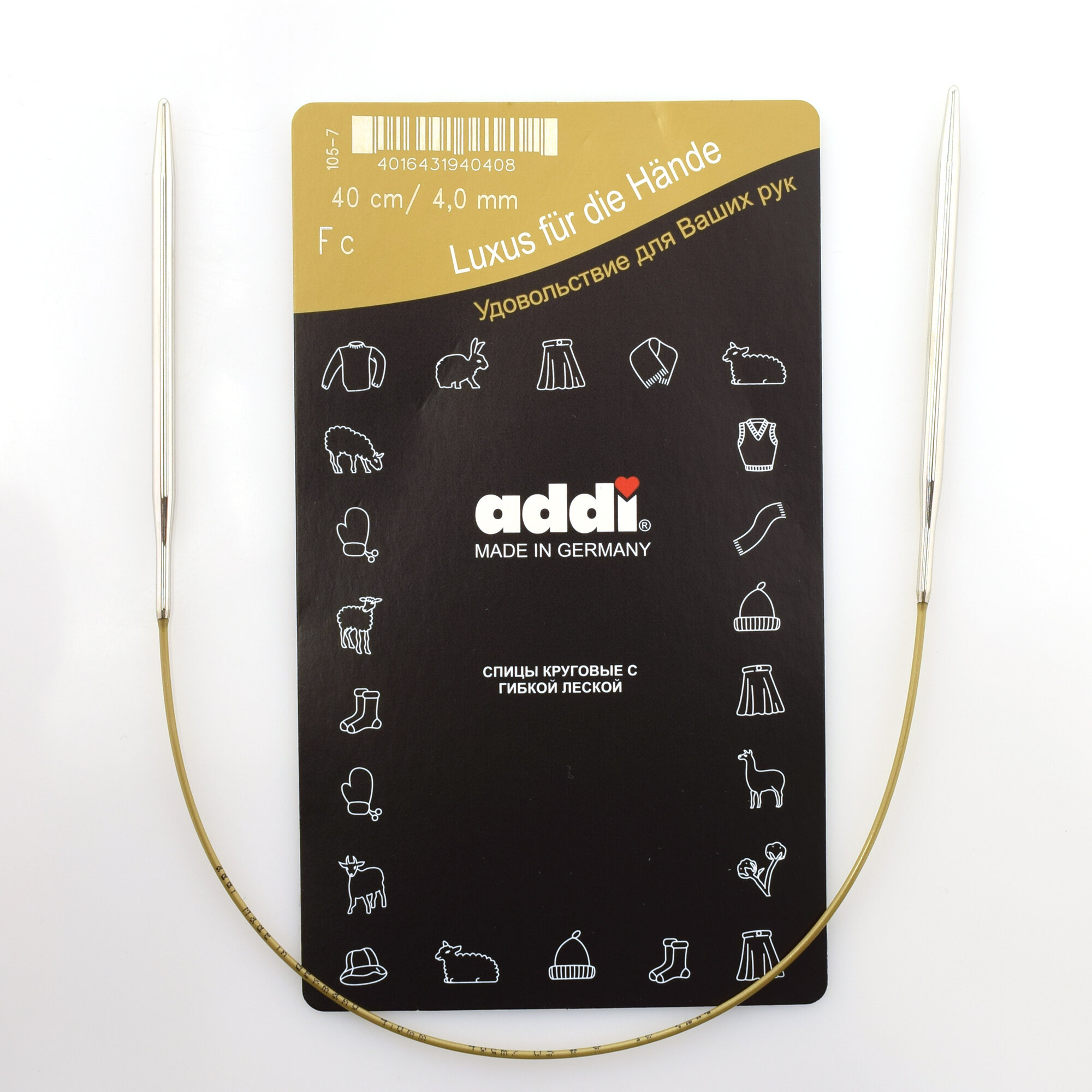 Addi 105-7 Спицы круговые супергладкие из никелированной латуни 40см #105-7/2-40 Addi 2.0