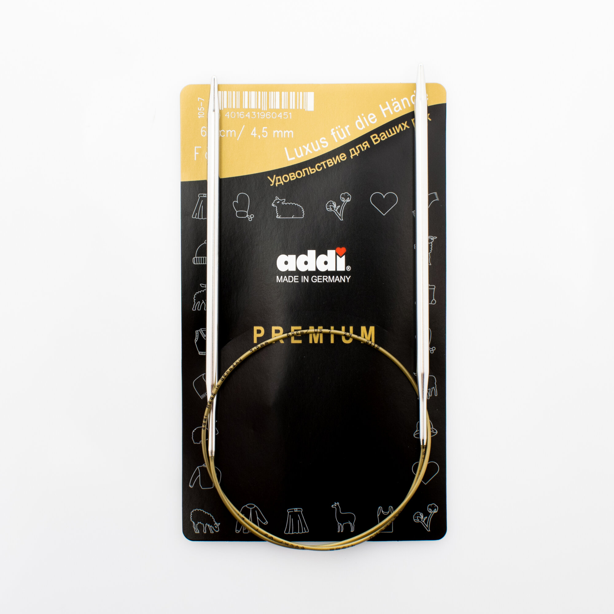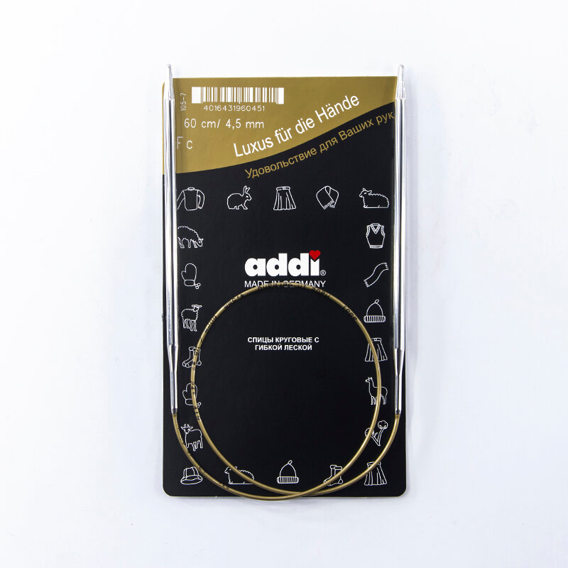 Купить Addi 105-7 Спицы круговые супергладкие из никелированной латуни 60см #105-7/4.5-60 Addi 4.5