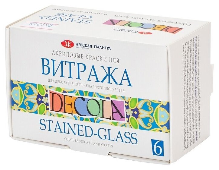 DECOLA / Акриловые краски для витража (стекла), 6 цветов по 20 мл, ЗХК Невская палитра интересное: