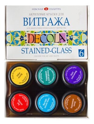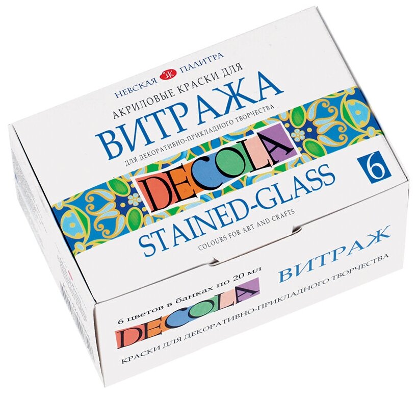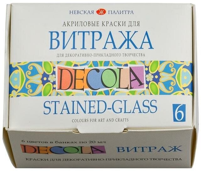 Купить DECOLA / Акриловые краски для витража (стекла), 6 цветов по 20 мл, ЗХК Невская палитра