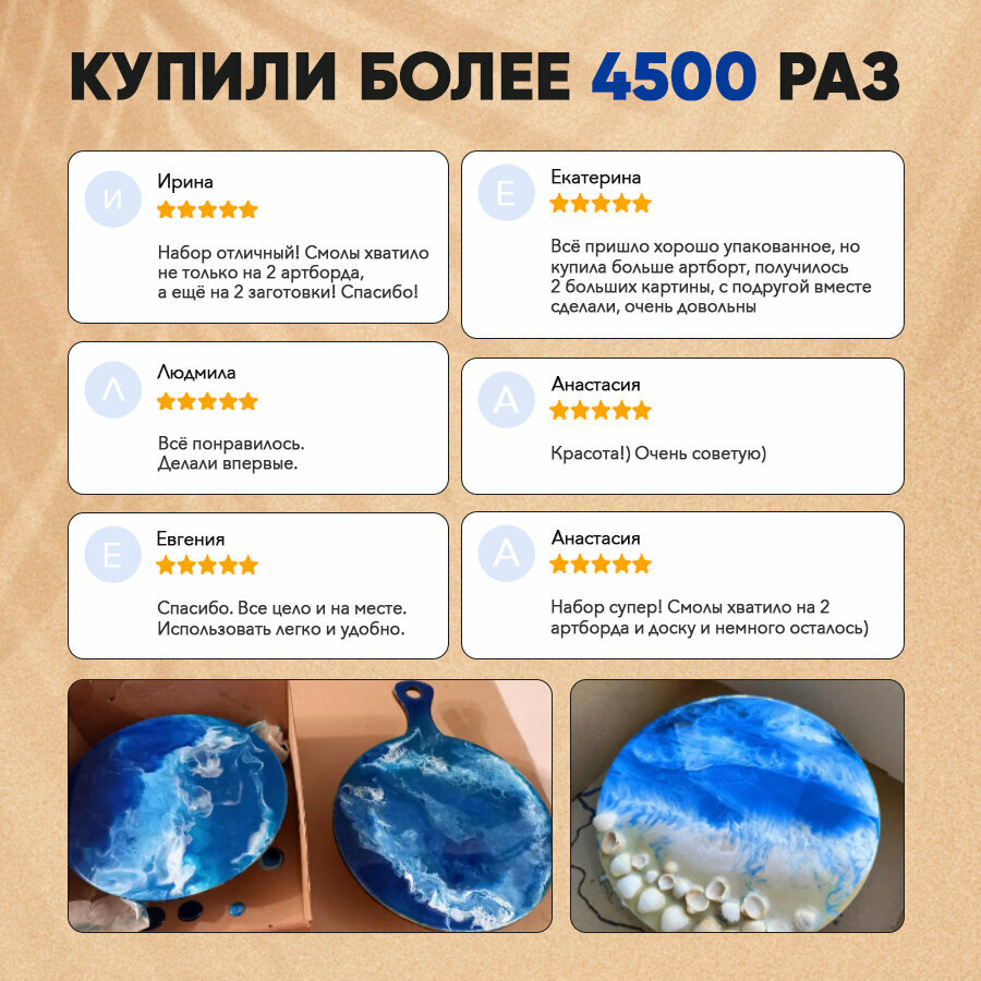 Ниже Вы можете прочитать отзывы на Набор для создания картины из эпоксидной смолы своими руками Морской Берег, ознакомится с подробными характеристиками, посмотреть интересные обзоры и фотографии на Набор для создания картины из эпоксидной смолы своими руками Морской Берег.