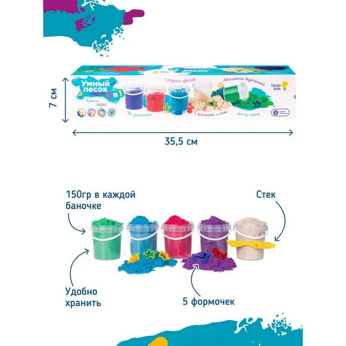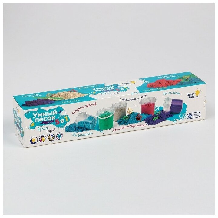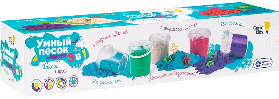 Умный песок Genio Kids "5 в 1" 750 г, 5 цветов, формочек, стек (SSR06)