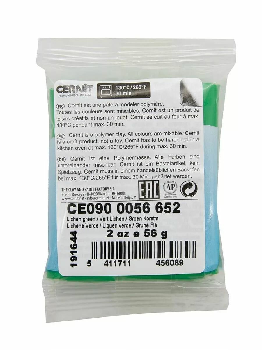 Купить Пластика полимерная запекаемая 'Cernit № 1' 56-62 г (652 зеленый лишайник)