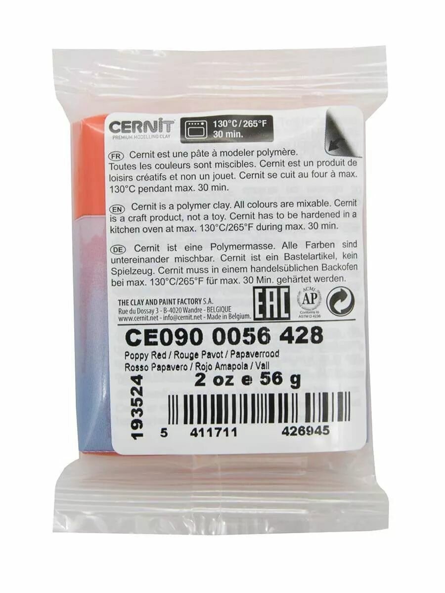 Купить Пластика полимерная запекаемая 'Cernit № 1' 56-62 г (428 красный мак)