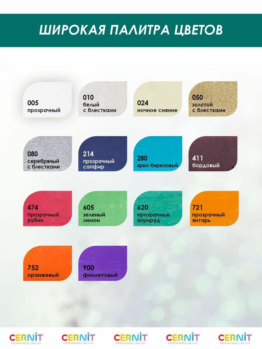 Купить Пластика полимерная запекаемая 'Cernit 'TRANSLUCENT' прозрачная, 56 г (024 ночное сияние)