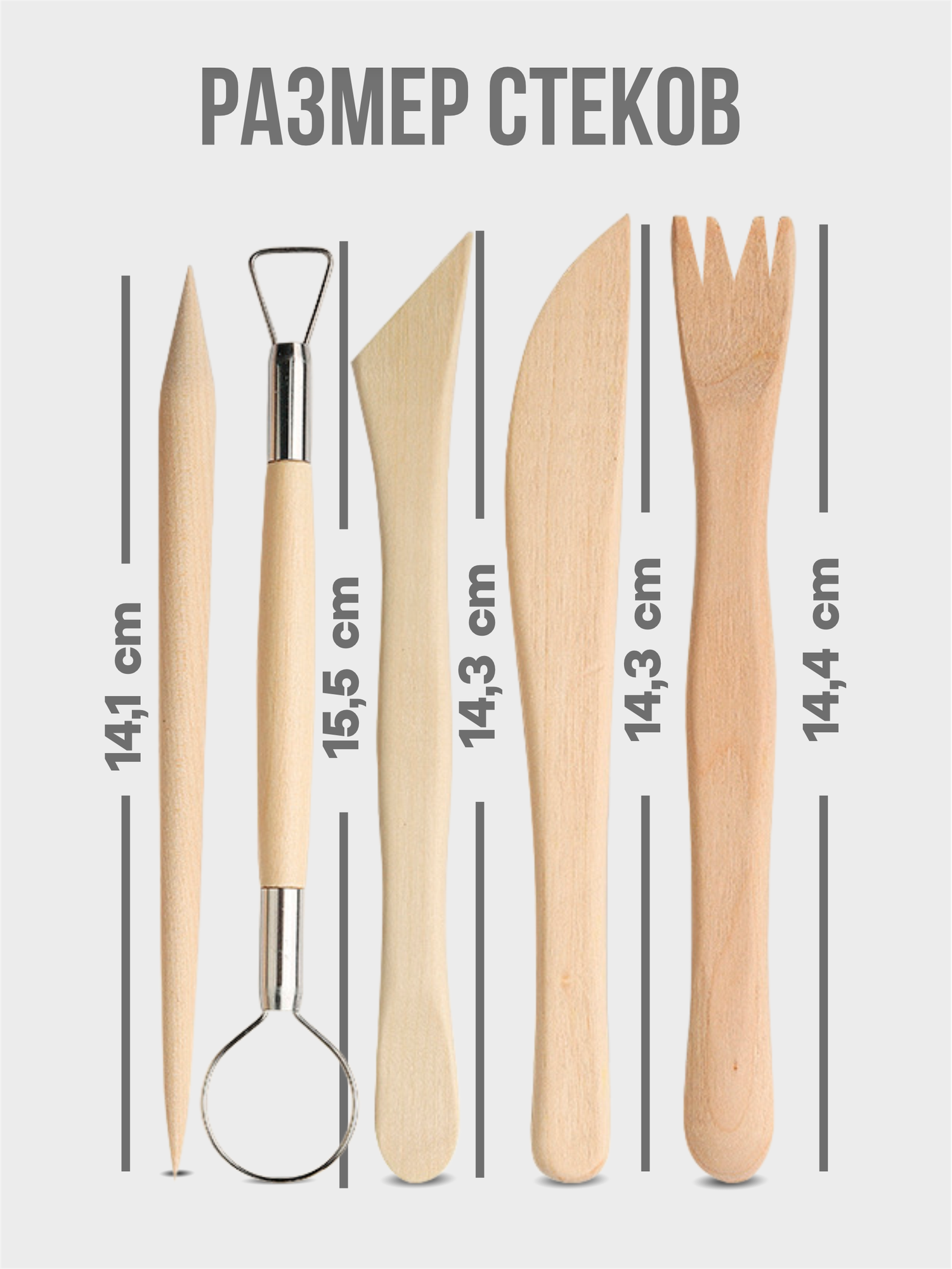 Ниже Вы можете прочитать отзывы на Набор инструментов для лепки глины, деревянные стеки, комплект из 5 штук, ознакомится с подробными характеристиками, посмотреть интересные обзоры и фотографии на Набор инструментов для лепки глины, деревянные стеки, комплект из 5 штук.