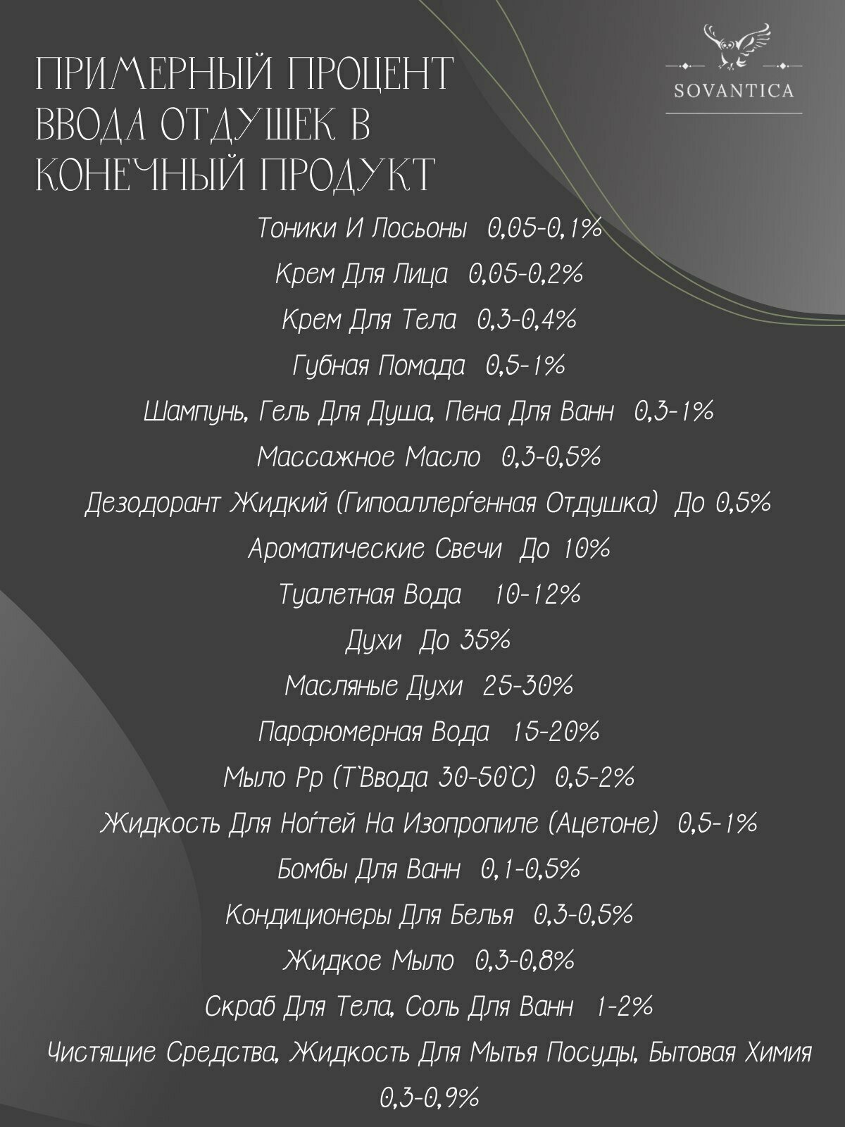 | Дополнительная информация | отдушка, отдушка для свечей, отдушка для диффузоров, отдушка для мыла, отдушка для скраба, отдушка для духов, отдушка для бомбочек для ванны, отдушка для соли для ванны, отдушка для косметики, отдушка для автопарфюма, отдушка для парфюма, сырьё, ароматы |