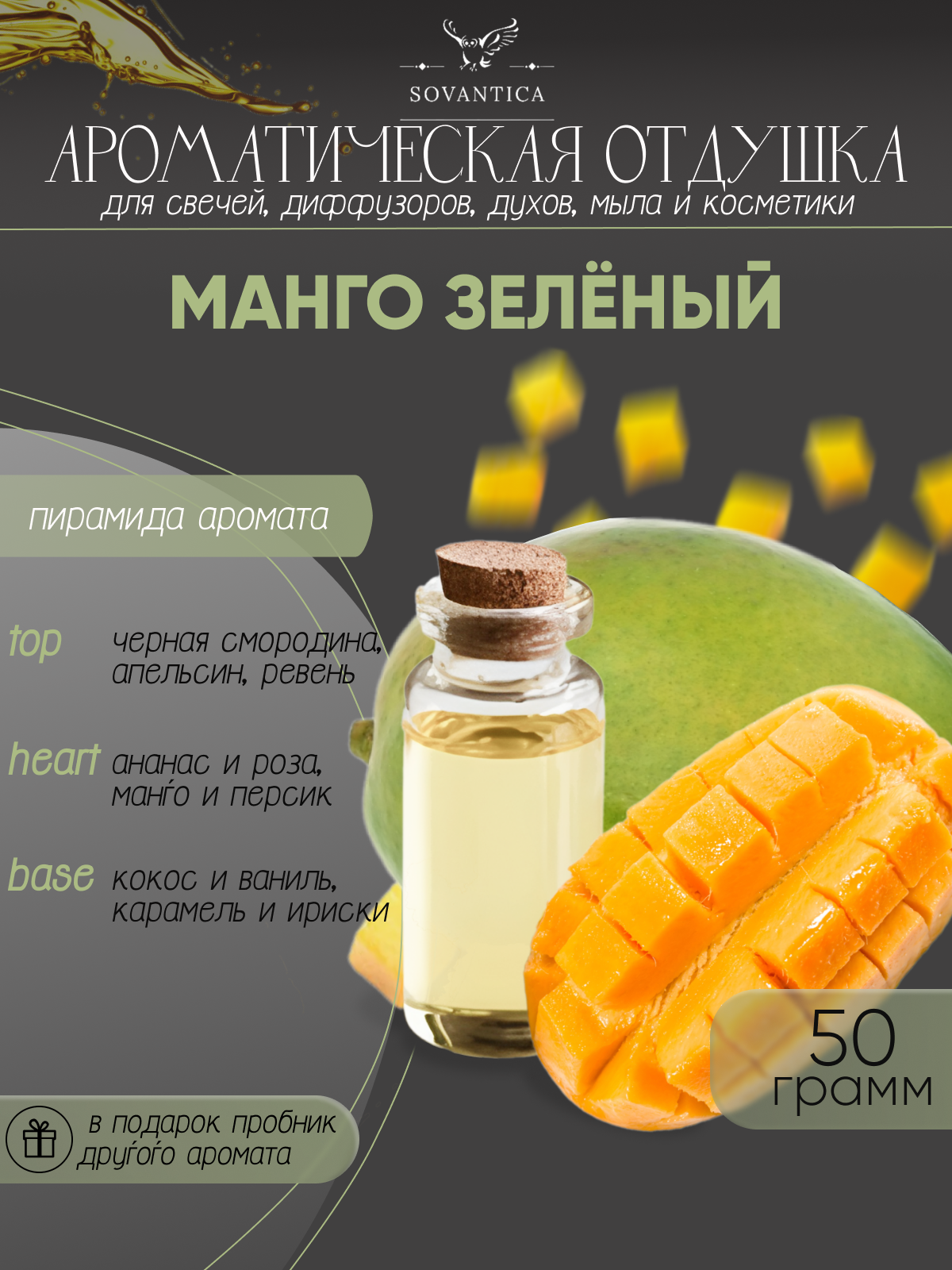 Ароматическая отдушка Манго зелёный 50гр Sovantica Кема Клаб