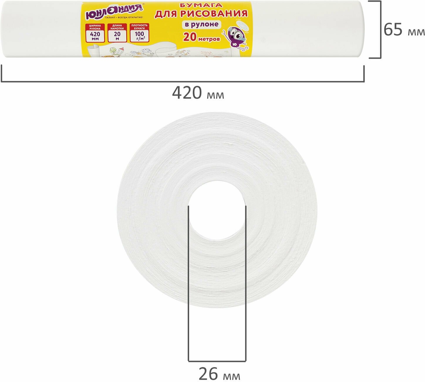 Бумага для рисования в рулоне акварелью/карандашом/красками Юнландия "Рисуй-Играй-Учись", 420 мм х 20 м, плотность 100 г/м2, 112173