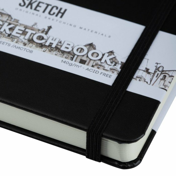 Скетчбук для рисования и скетчинга SKETCHMARKER 140г/м2 13х21см. 160 страниц цвета слоновой кости, твердая обложка, цвет: черный