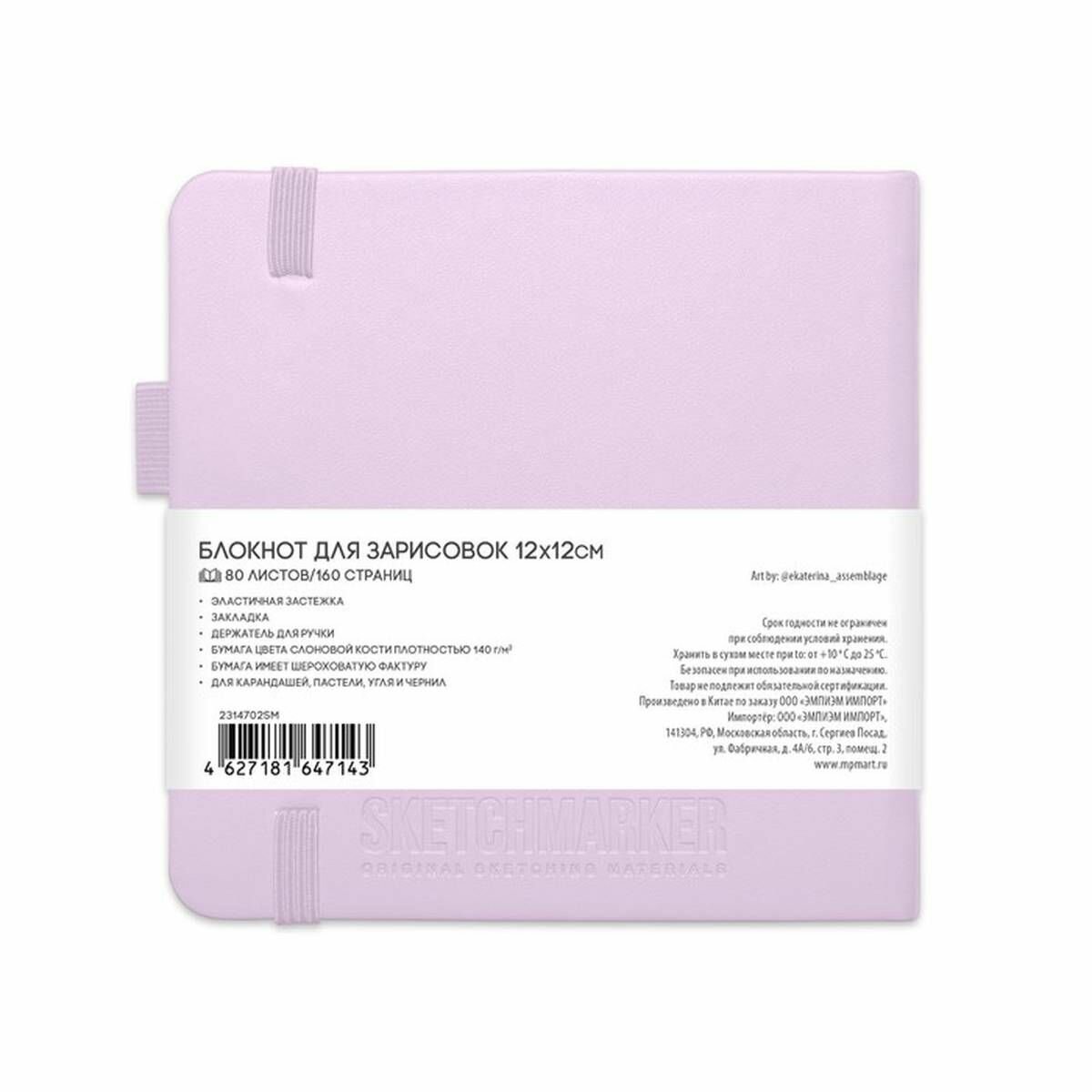 Купить Скетчбук для рисования и скетчинга SKETCHMARKER 140г/м2 12х12см. 160 страниц цвета слоновой кости, твердая обложка, цвет: пастельно-фиолетовый