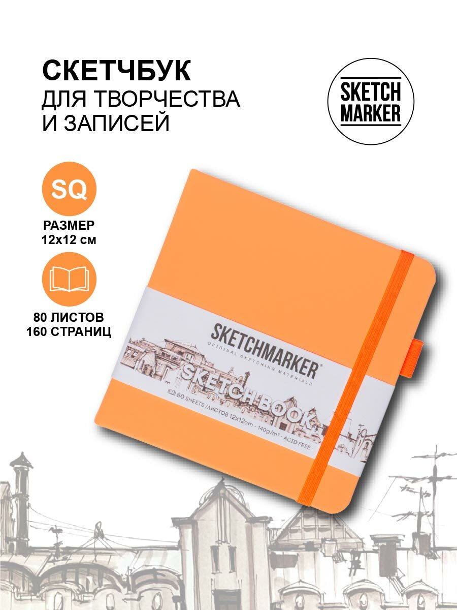 Скетчбук для рисования и скетчинга SKETCHMARKER 140г/м2 12х12см. 160 страниц цвета слоновой кости, твердая обложка, цвет: оранжевый