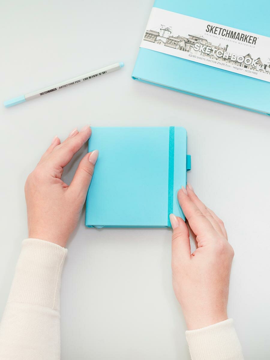 Скетчбук для рисования, блокнот для скетчинга SKETCHMARKER Sketchmarker 140г/кв. м 13*21см 80л твердая обложка, цвет Небесно-голубой