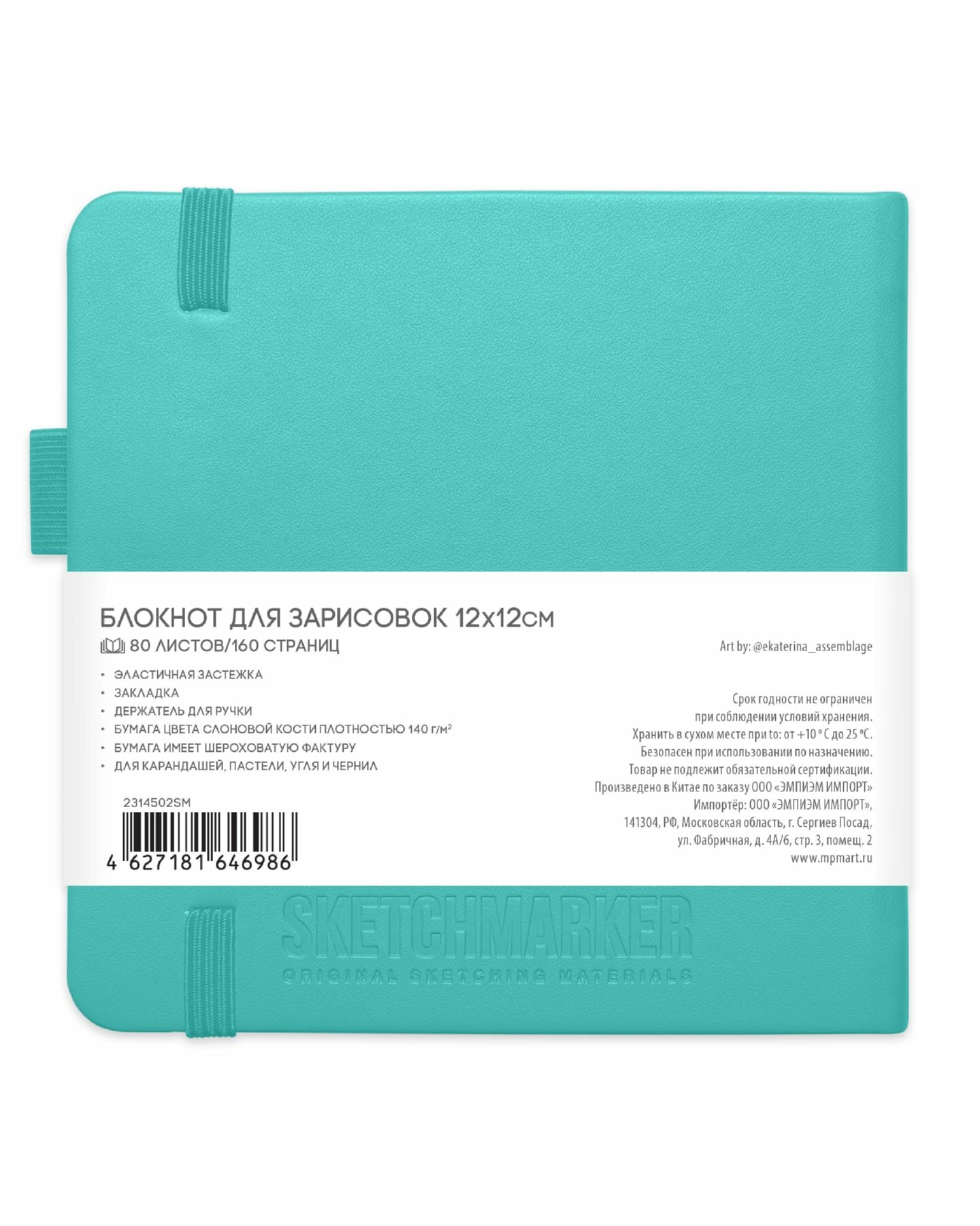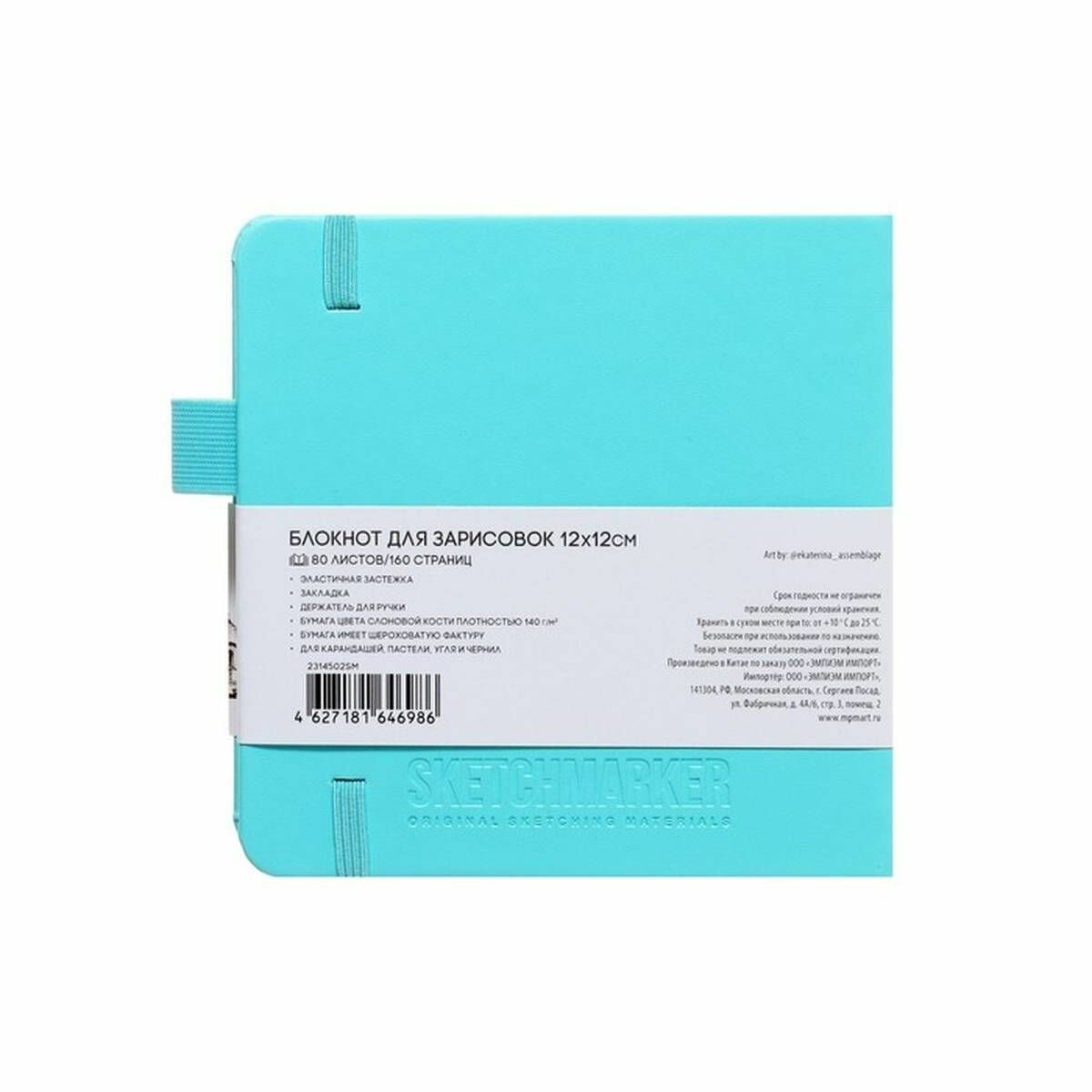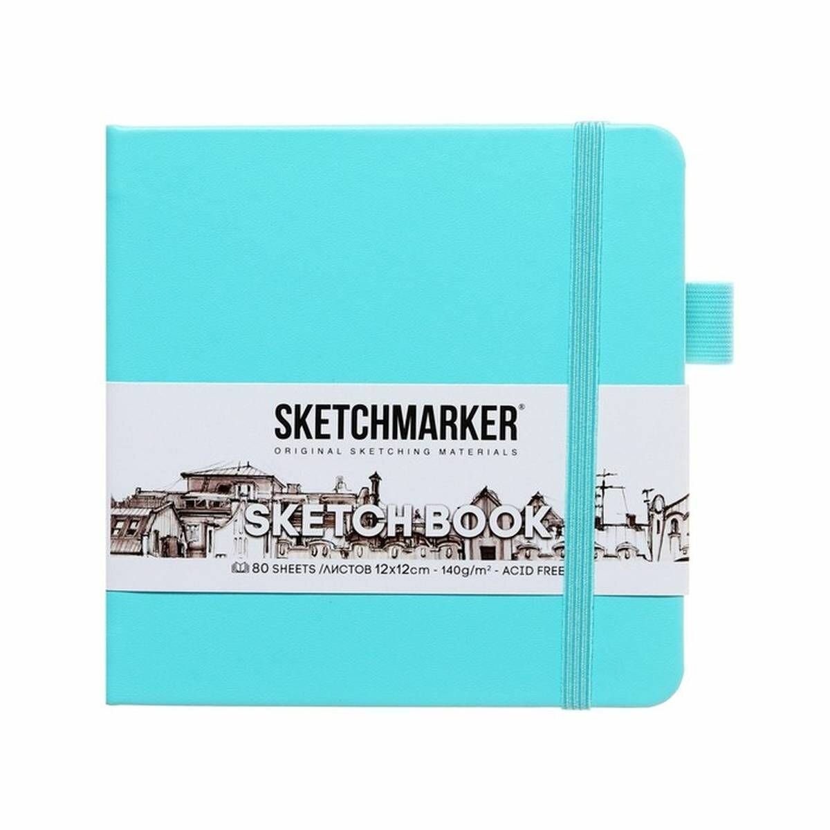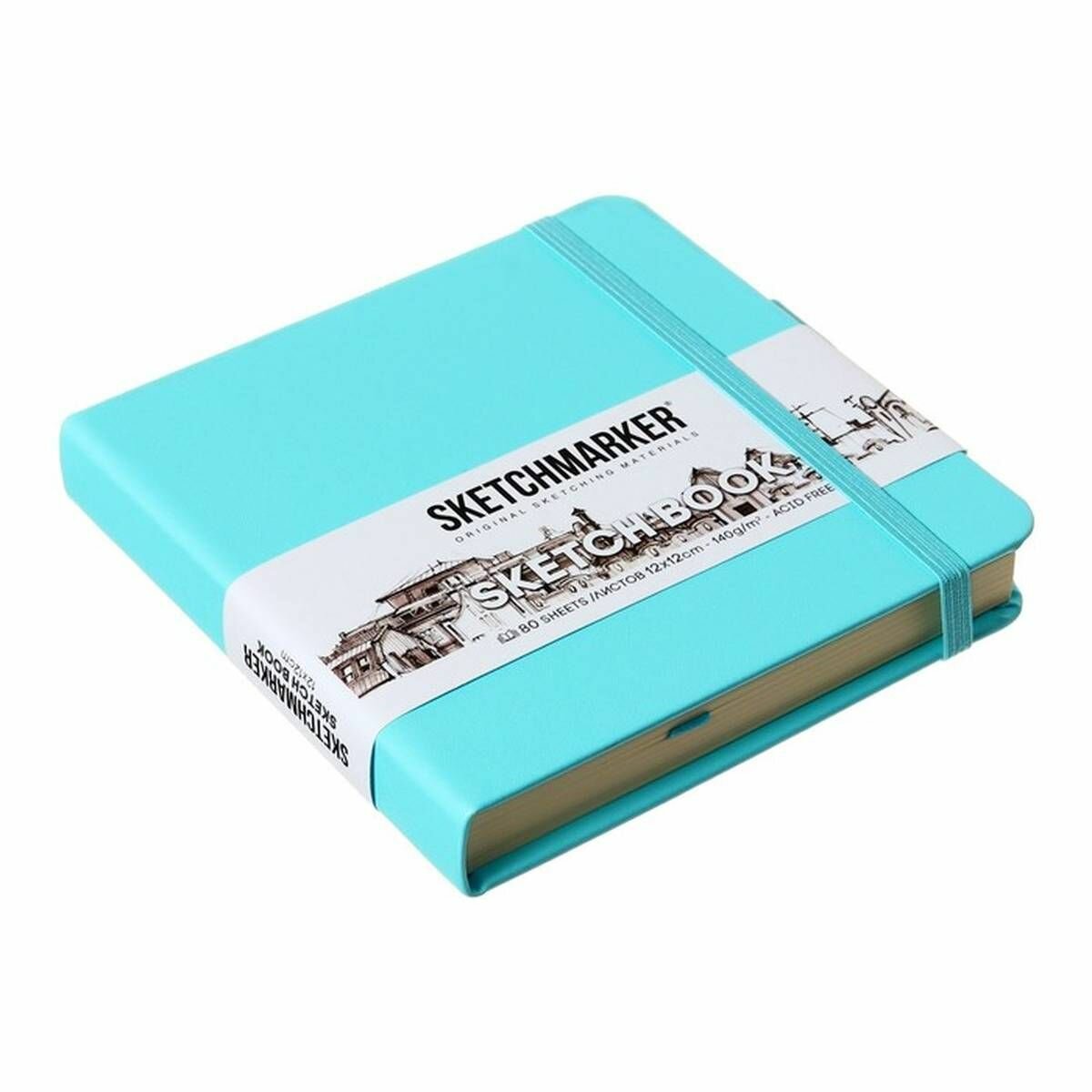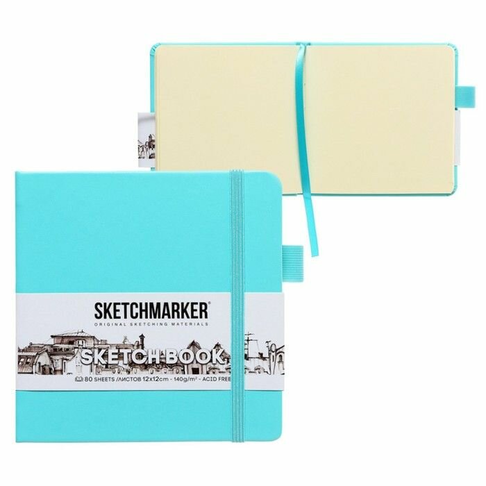 Купить Скетчбук для рисования и скетчинга SKETCHMARKER 140г/м2 12х12см. 160 страниц цвета слоновой кости, твердая обложка, цвет: тиффани