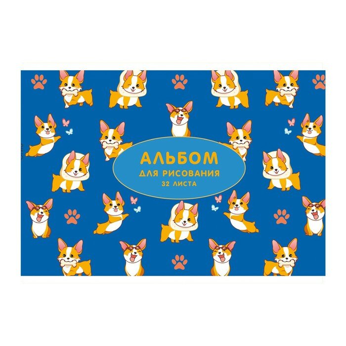 Купить Альбом д/ рис А4 32л на скрепке Корги, обл офс, бл офс 100г/м2 9421378