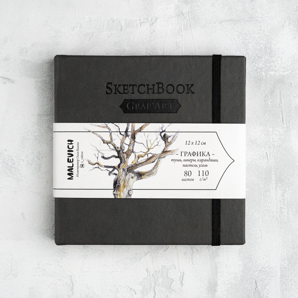 Скетчбук Малевичъ для графики GrafArt Sketch, серый, 110 г/м, 12х12 см, 80л интересное: