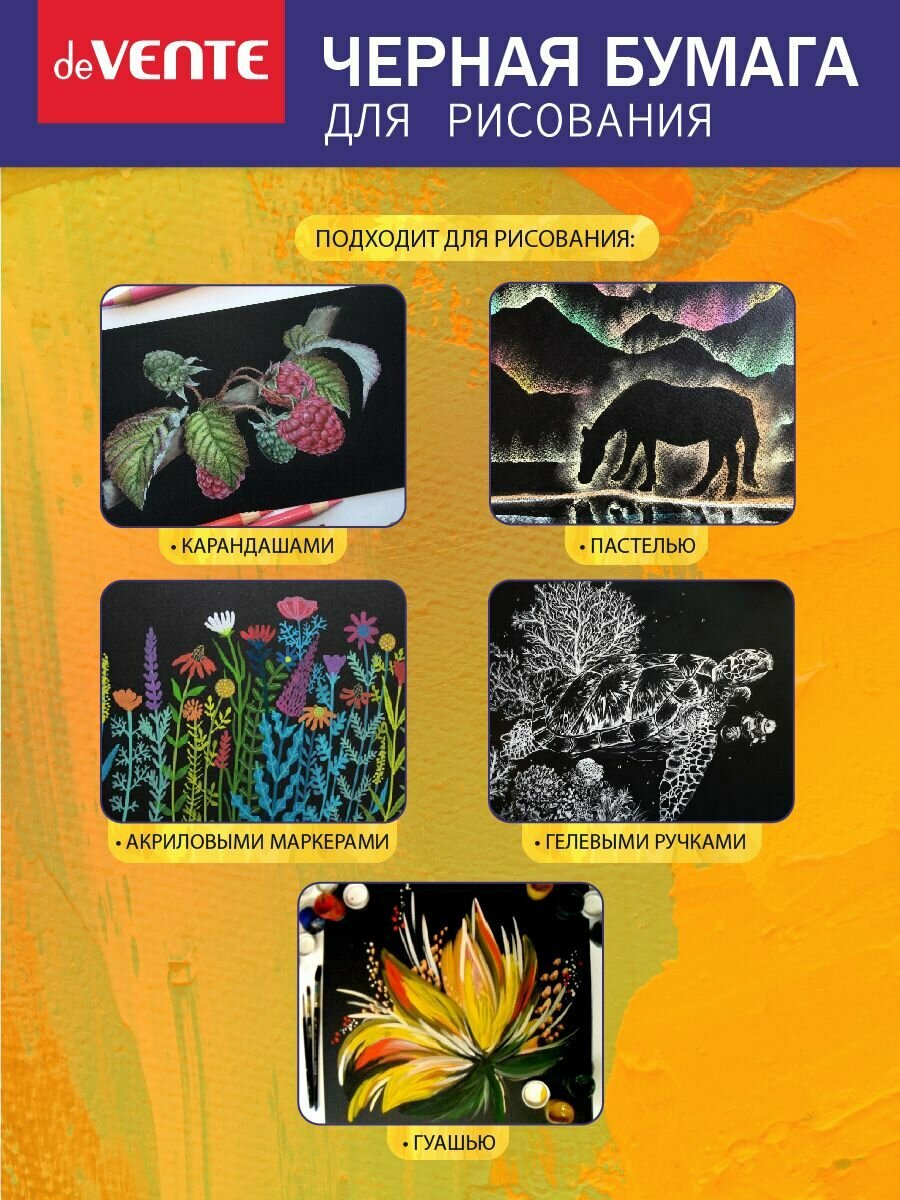 Бумага для пастели А5, deVENTE, набор 10 листов, 160 г/м2, чёрная, в пакете
