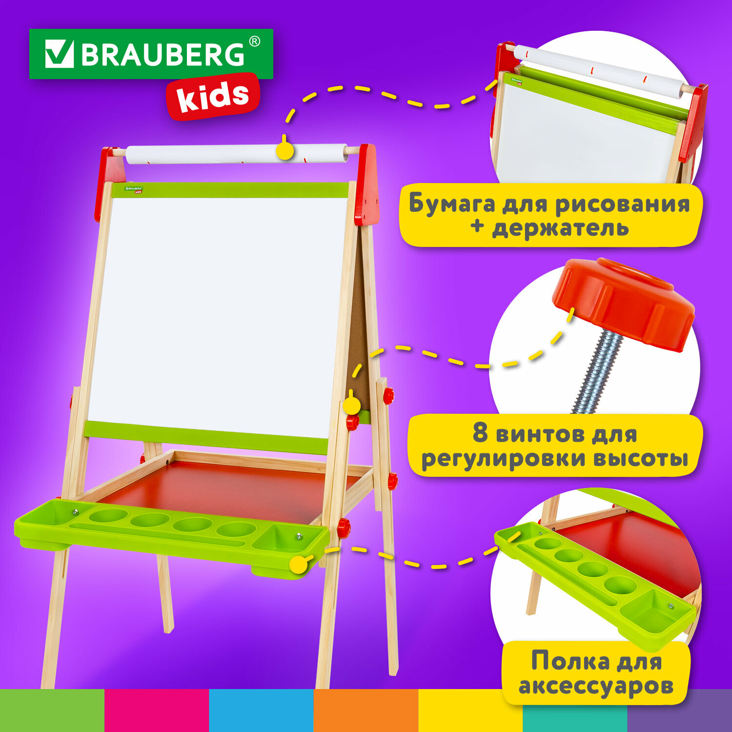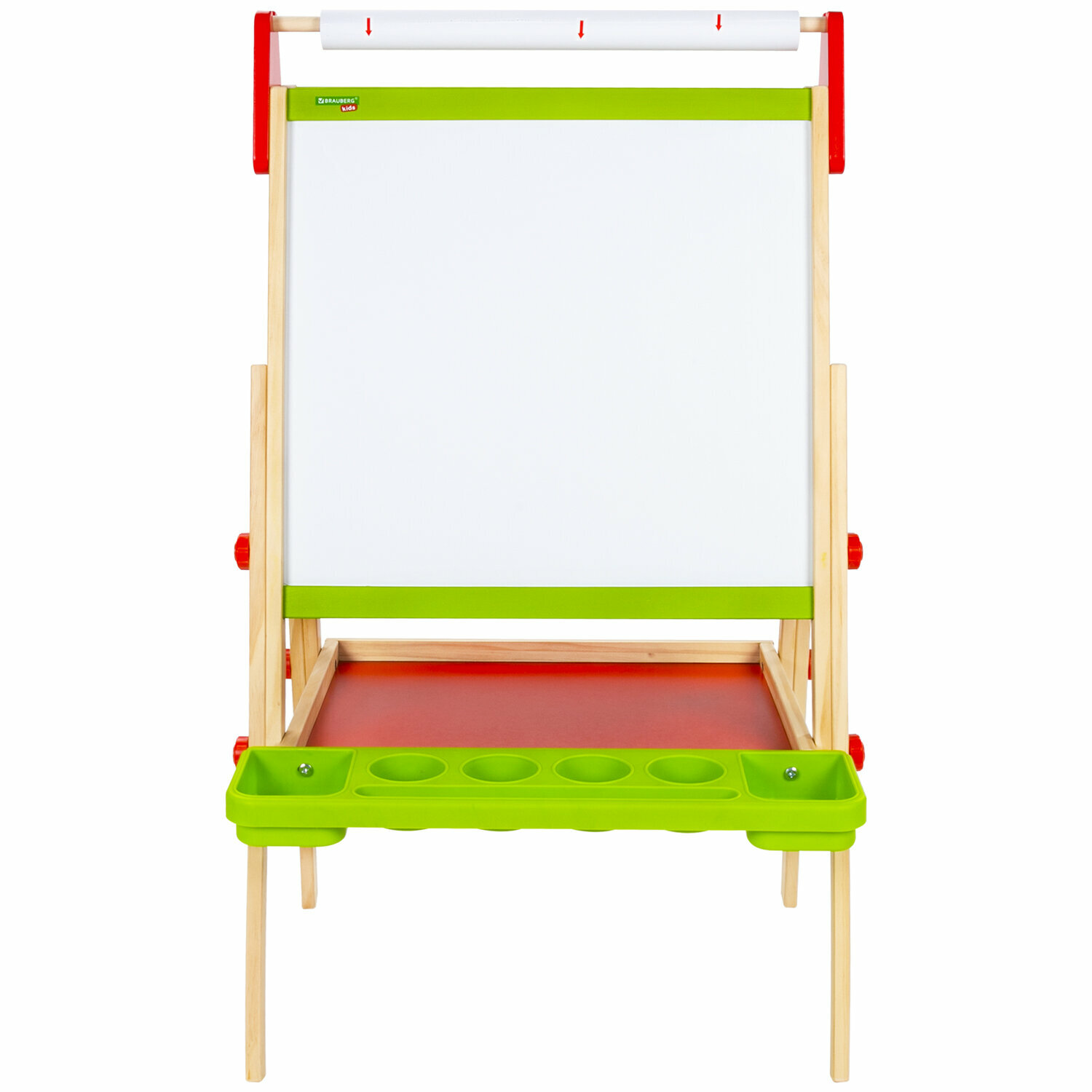 Мольберт детский двухсторонний растущий 3в1 для мела/магнитно-маркерный 50х50 см, с рулоном для рисования, Brauberg Kids, 238150