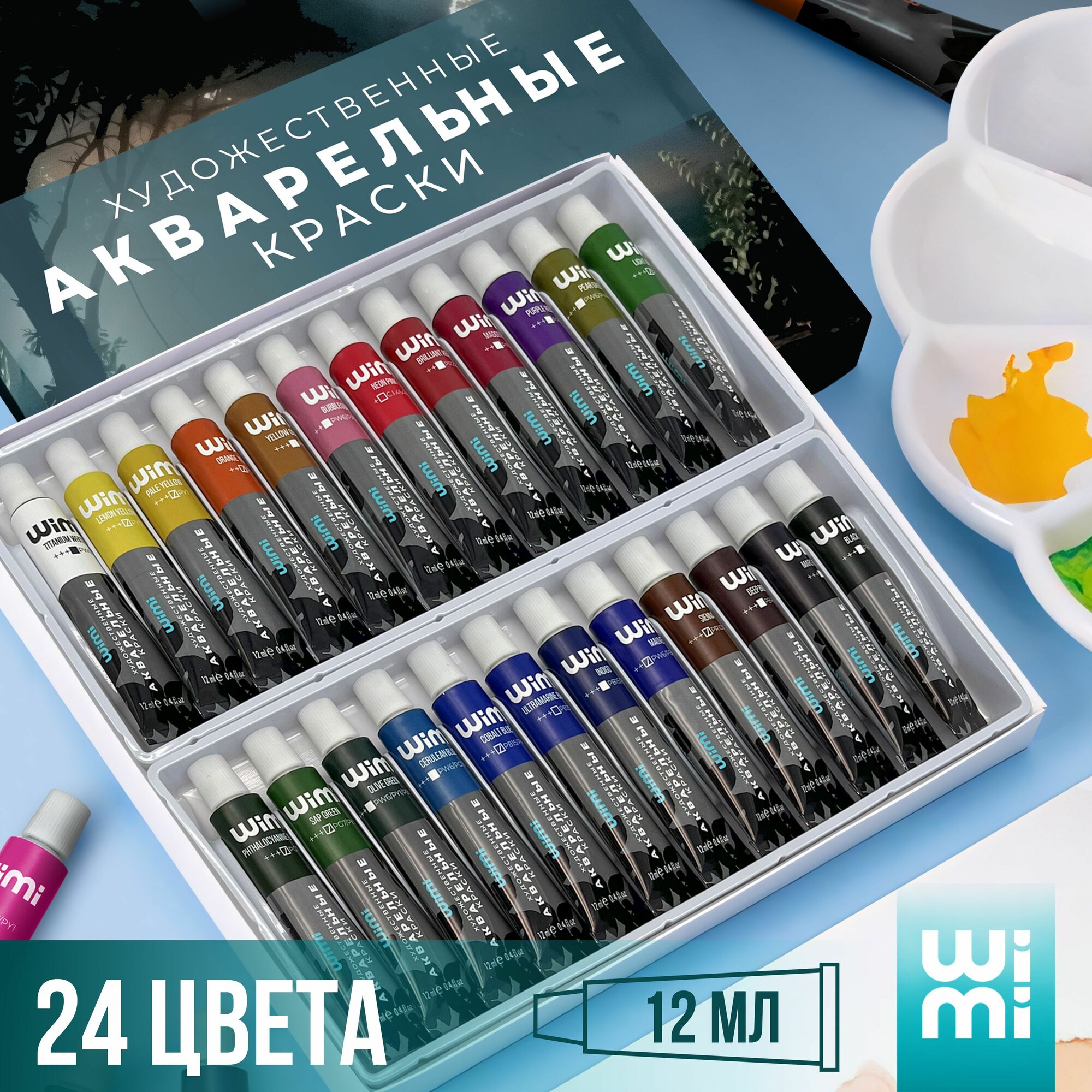 Акварельные краски WiMi, набор 24 цвета в тюбиках интересное: