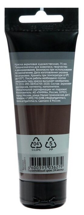 Купить Краска акриловая художественная Гамма "Студия", 75 мл, пластиковая туба, ван-дик коричневый