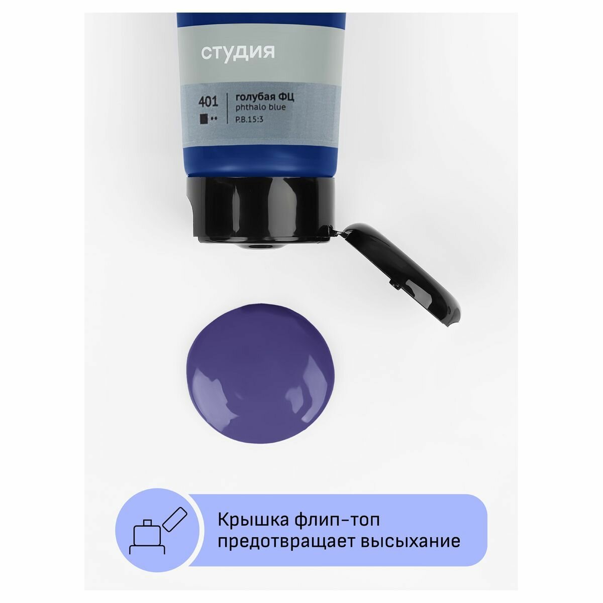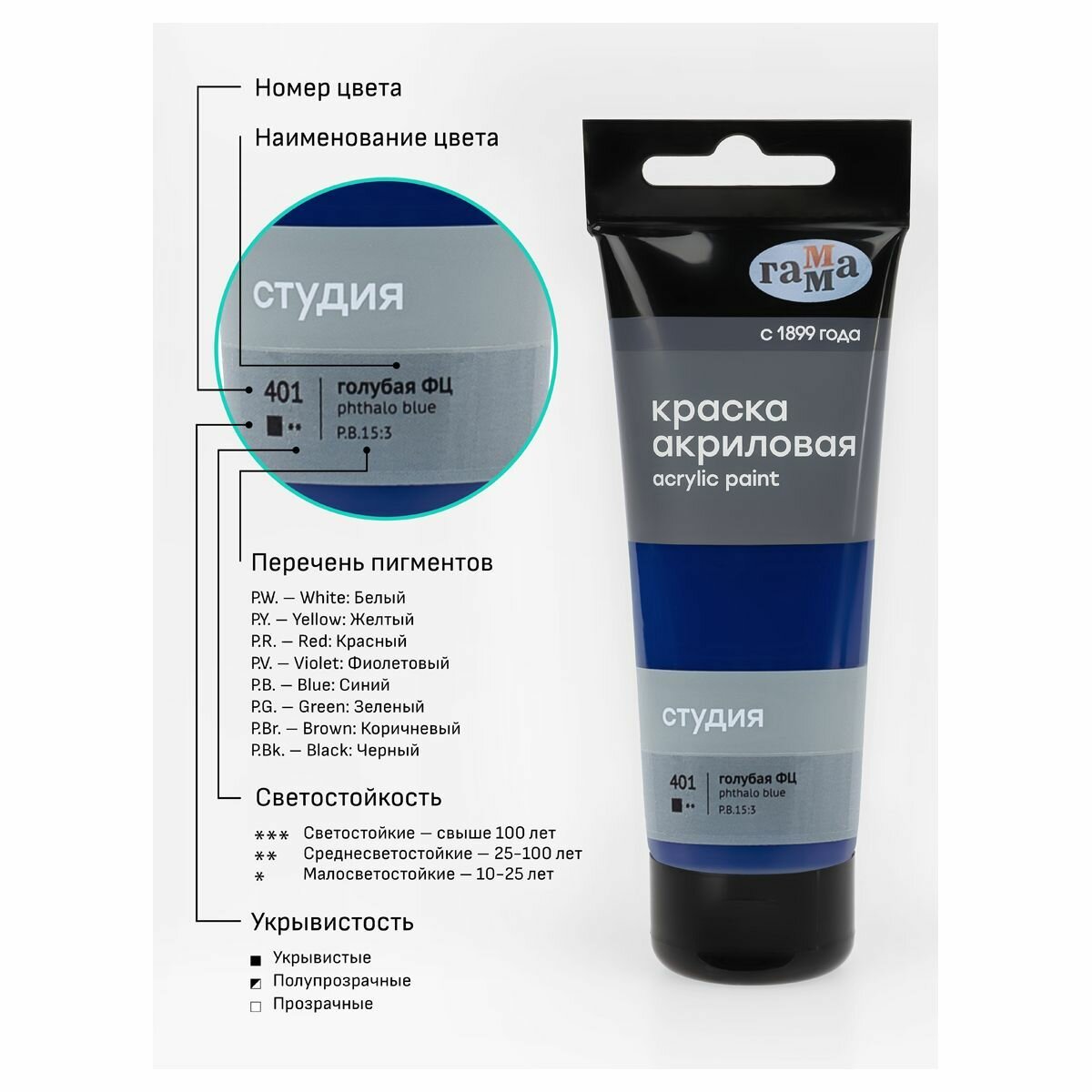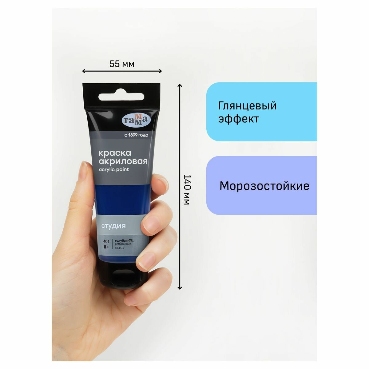 Краска акриловая художественная Гамма "Студия", пластиковая туба, 110мл, голубая (2802110418)