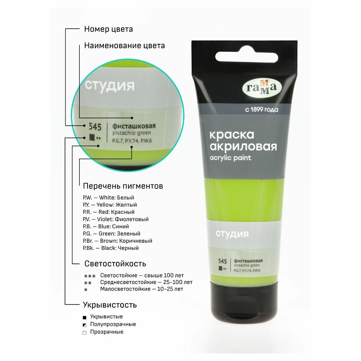 Купить Краска акриловая художественная Гамма "Студия", 75 мл, пластиковая туба, фисташковая