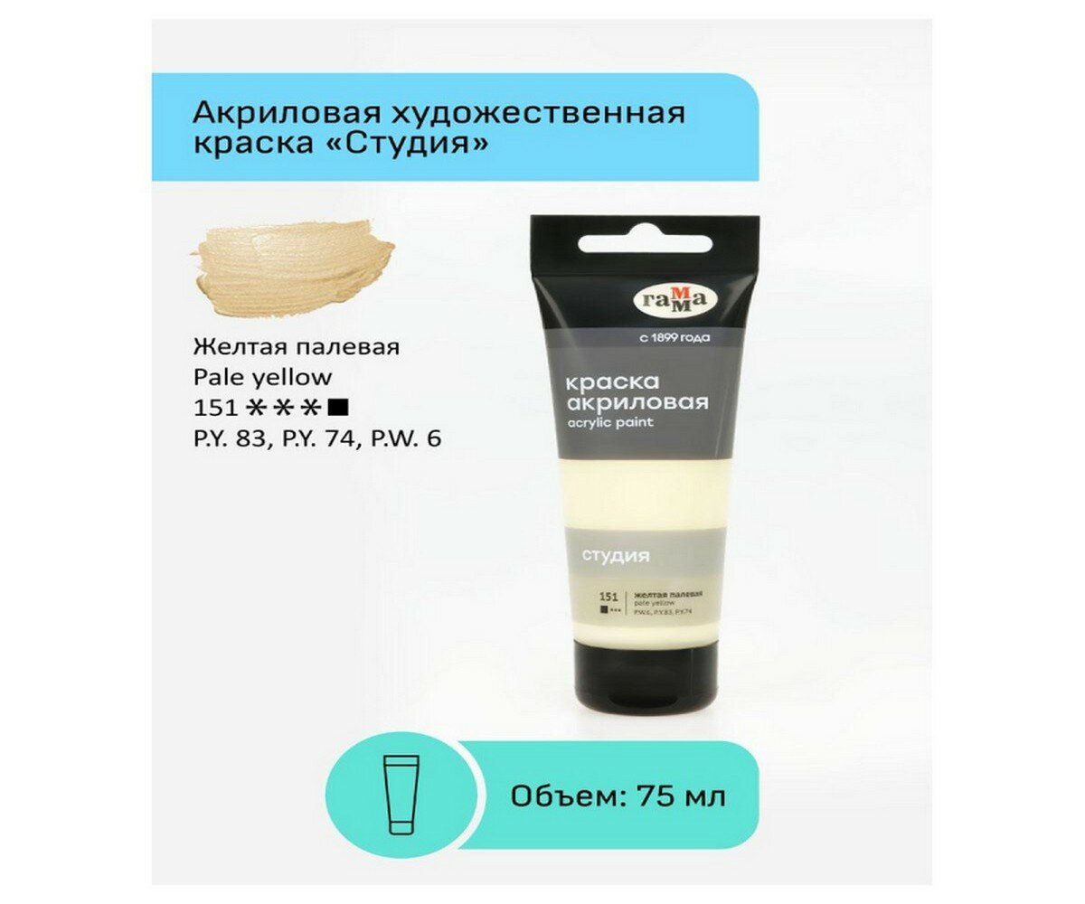 СохранитьКраска акриловая художественная Гамма "Студия", 75мл, желтая палевая интересное: